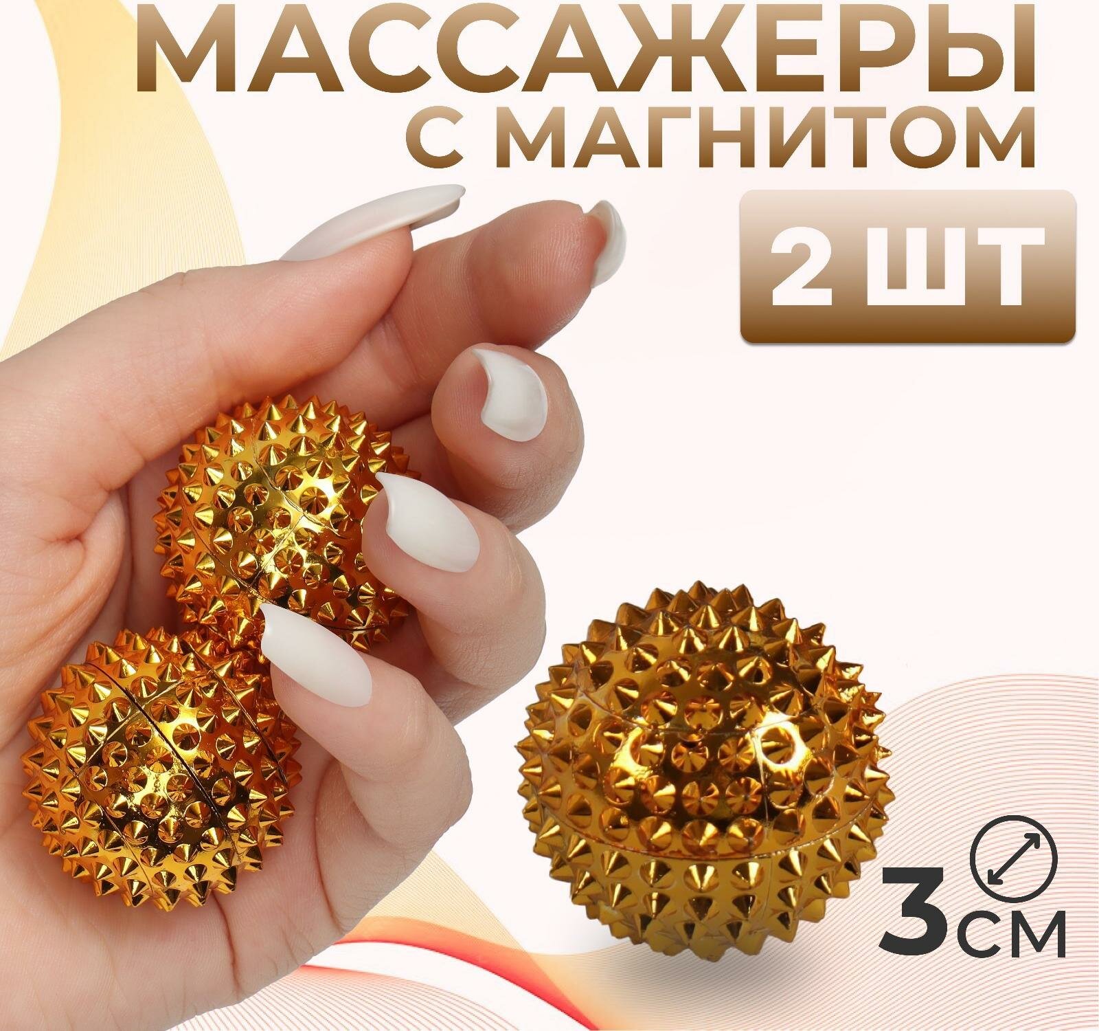Набор массажёров с магнитом, «Шары», d = 3 см, 2 шт, цвет золотистый (арт. 3530683)