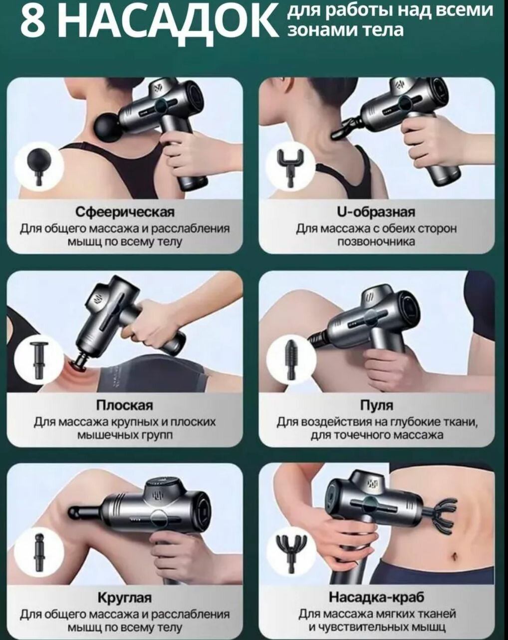Массажер перкуссионный для тела, 32 режима, 8 насадок интересное: