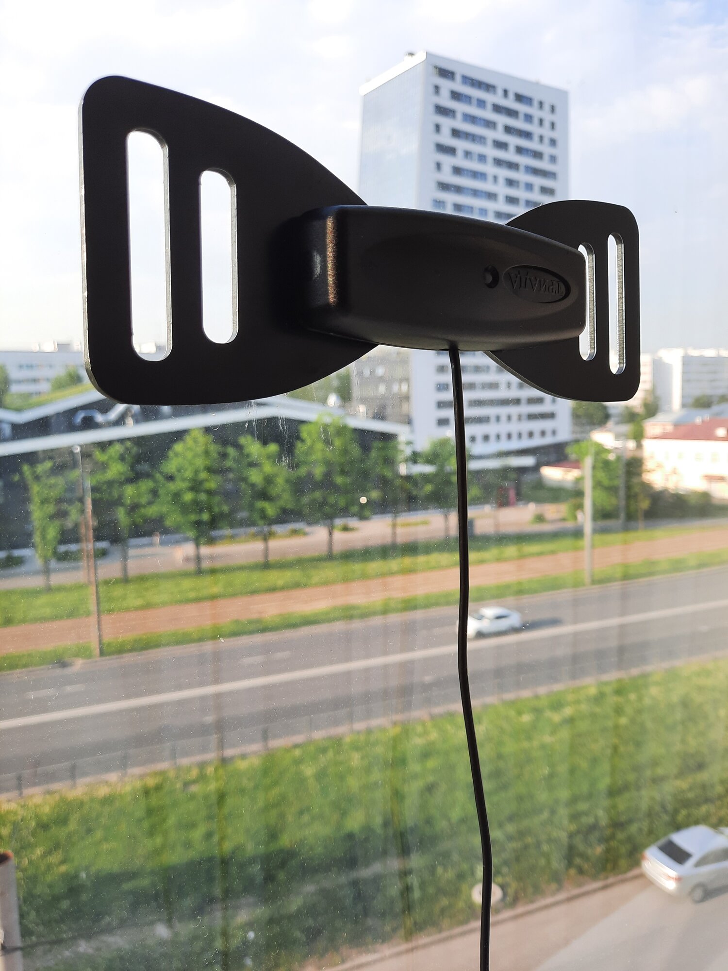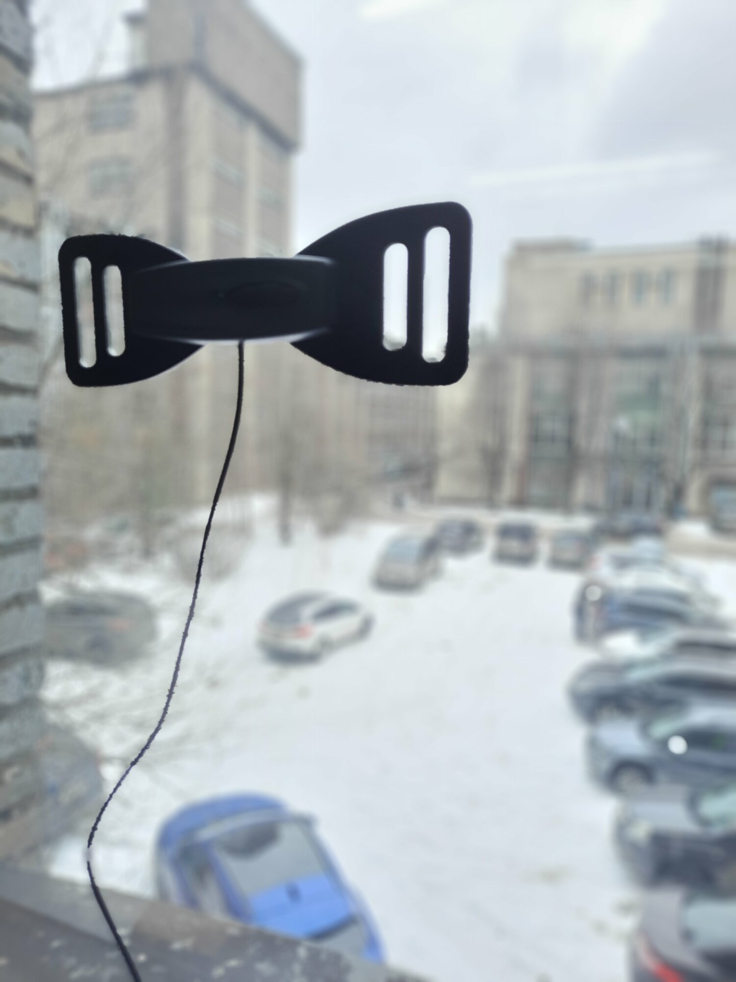 Комнатная антенна для цифрового телевидения DVB-T2 Триада-3104 чёрная Бабочка, пассивная с кабелем 5 метра, размер 20*7 см интересное: