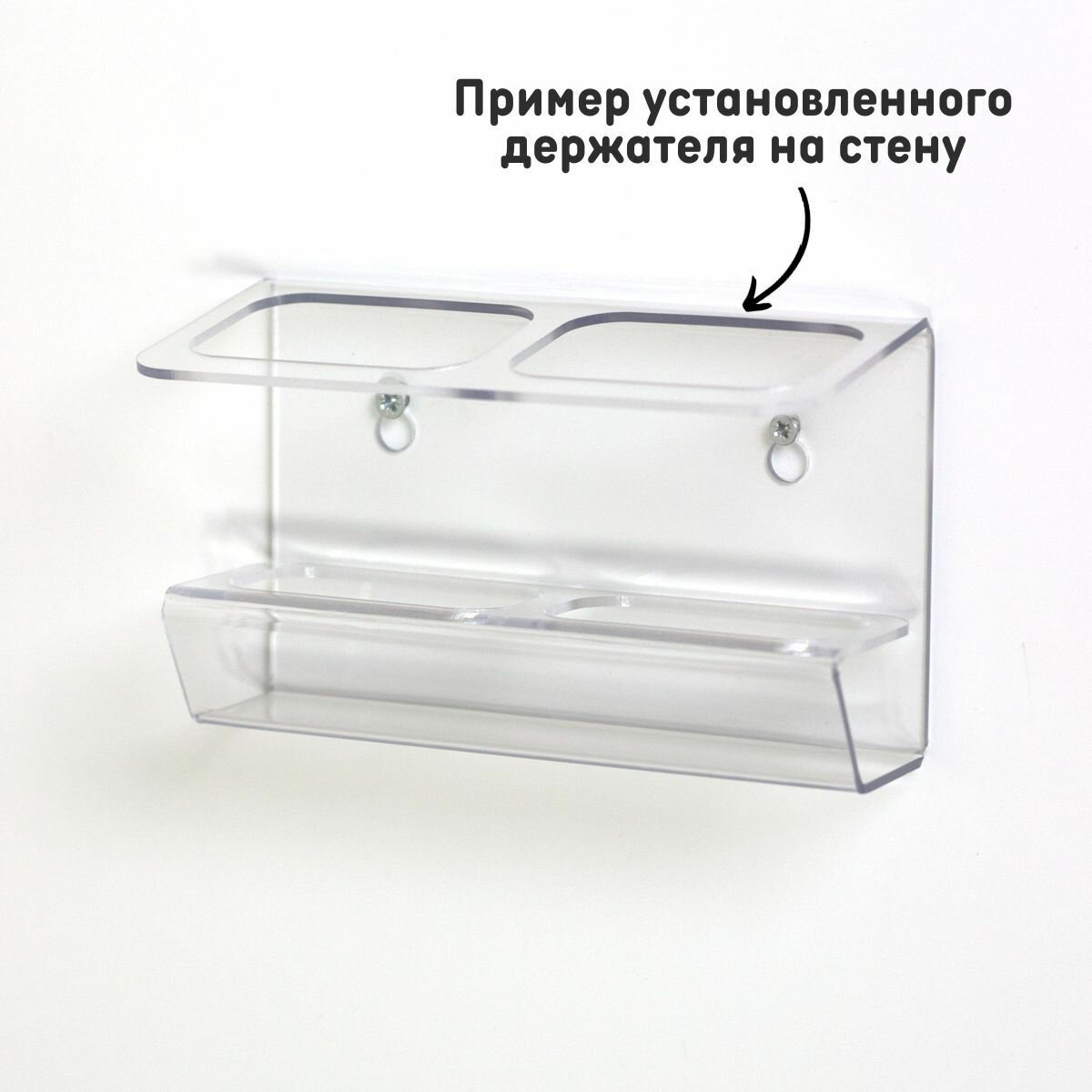 Купить Держатель для пультов на стену с 2-мя ячейками, прозрачный, размер 140х80х60 мм / Подставка для 2-ух пультов