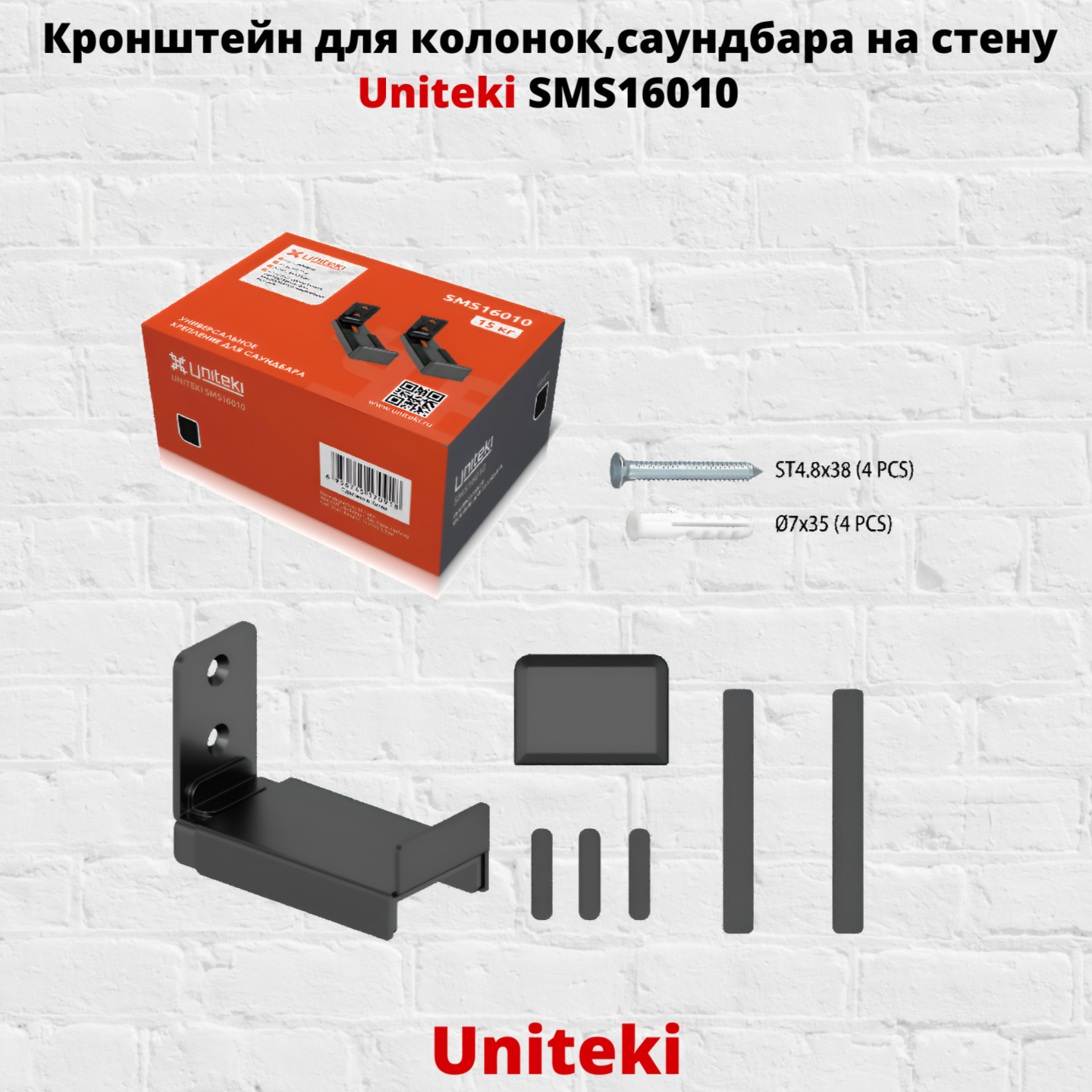 Кронштейн для колонок,саундбара на стену UniTeki SMS16010,черный