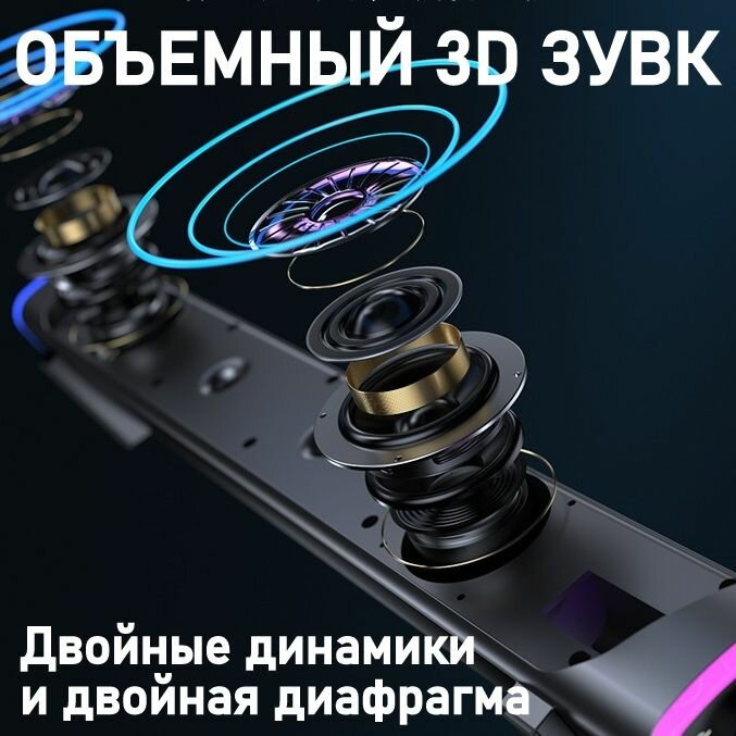 Колонка для компьютера и телевизора белая Саундбар Колонки с подсветкой интересное: