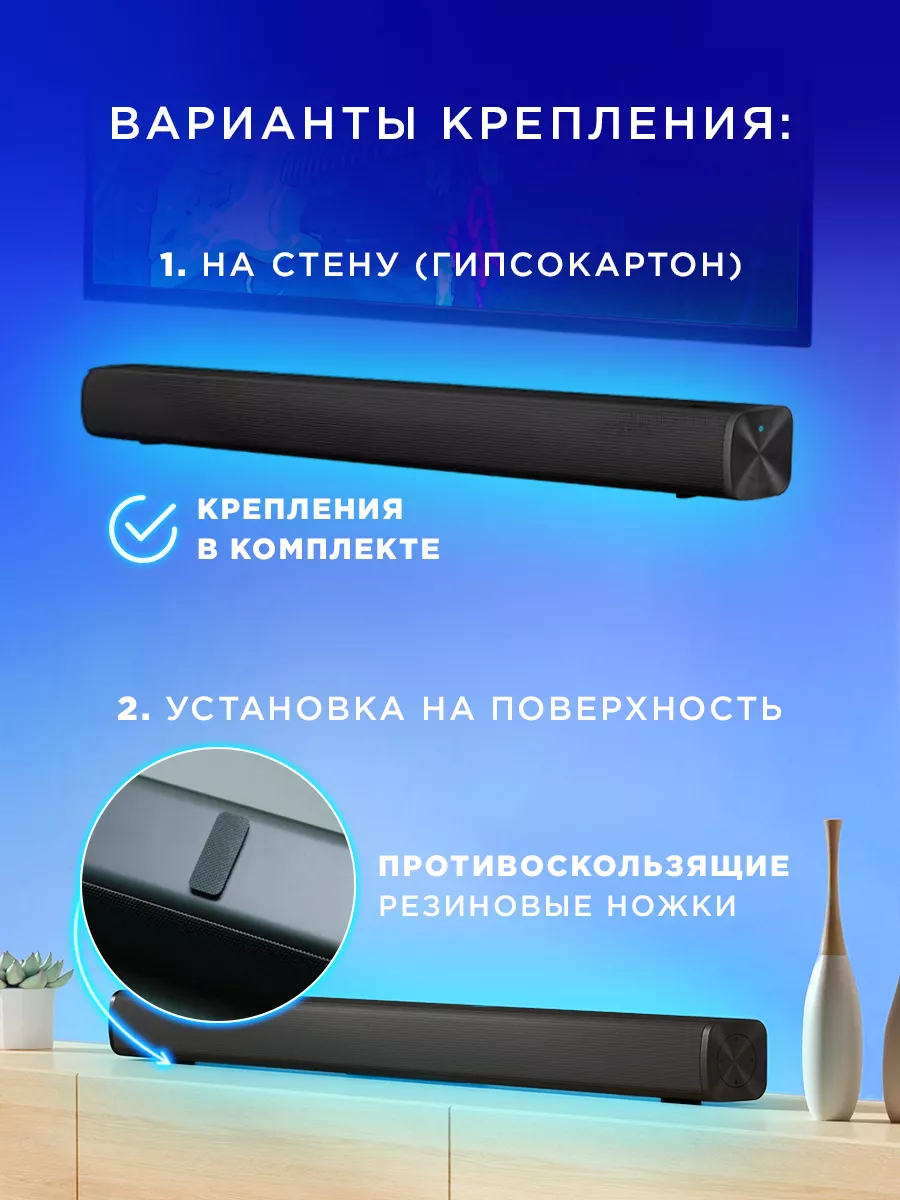 | Комплектация | саундбар, кабель SPDIF, комплект для монтажа, качественный переходник в подарок |