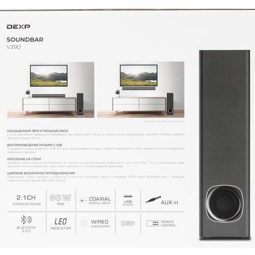 Ниже Вы можете прочитать отзывы на Саундбар DEXP V390, ознакомится с подробными характеристиками, посмотреть интересные обзоры и фотографии на Саундбар DEXP V390.