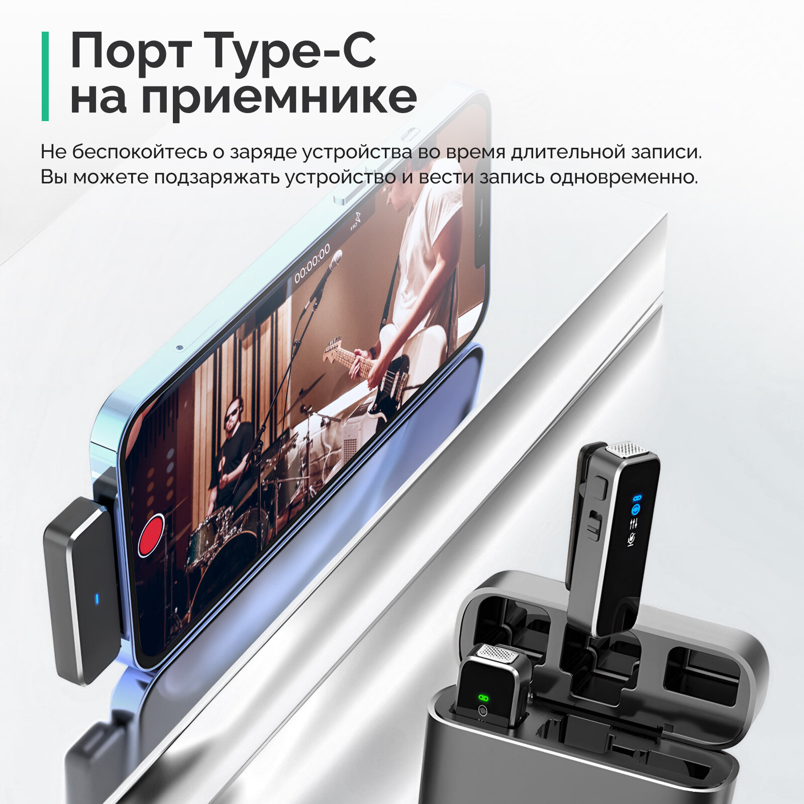 Микрофон петличка беспроводная Kromix Colibri , с шумоподавлением, Type-C, Lightning
