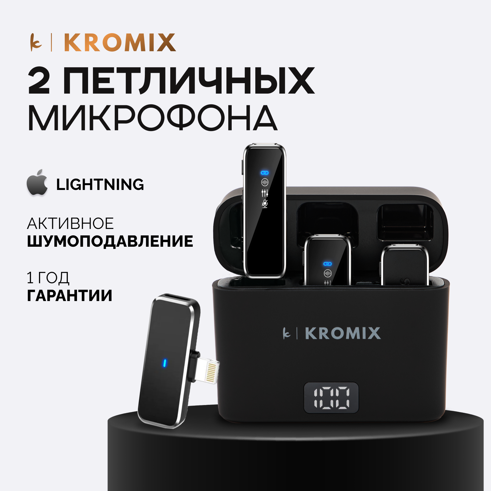 Микрофон петличка Kromix Nova, беспроводной, с зарядным кейсом, Lightning, 2 шт. , черный