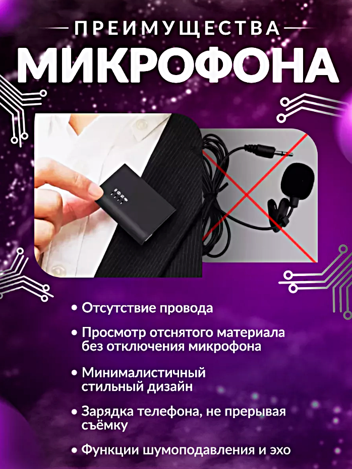 Микрофон беспроводной петличный с шумоподавлением, Микрофон с разъемом Lightning для iPhone, Петличка для стрима, конференций, Черный интересное: