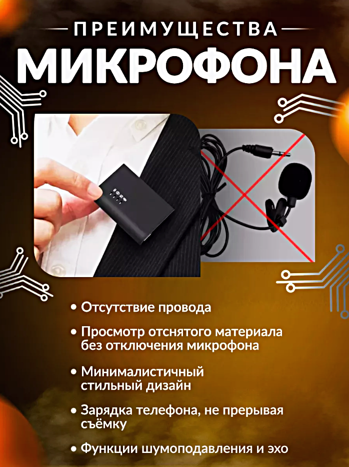 Микрофон петличный беспроводной, с шумоподавлением, петличка, для мобильного телефона, разъем Lightning, для Iphone, черный, 2шт