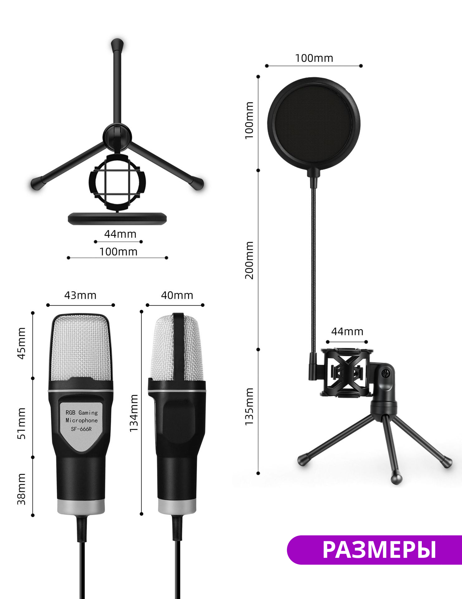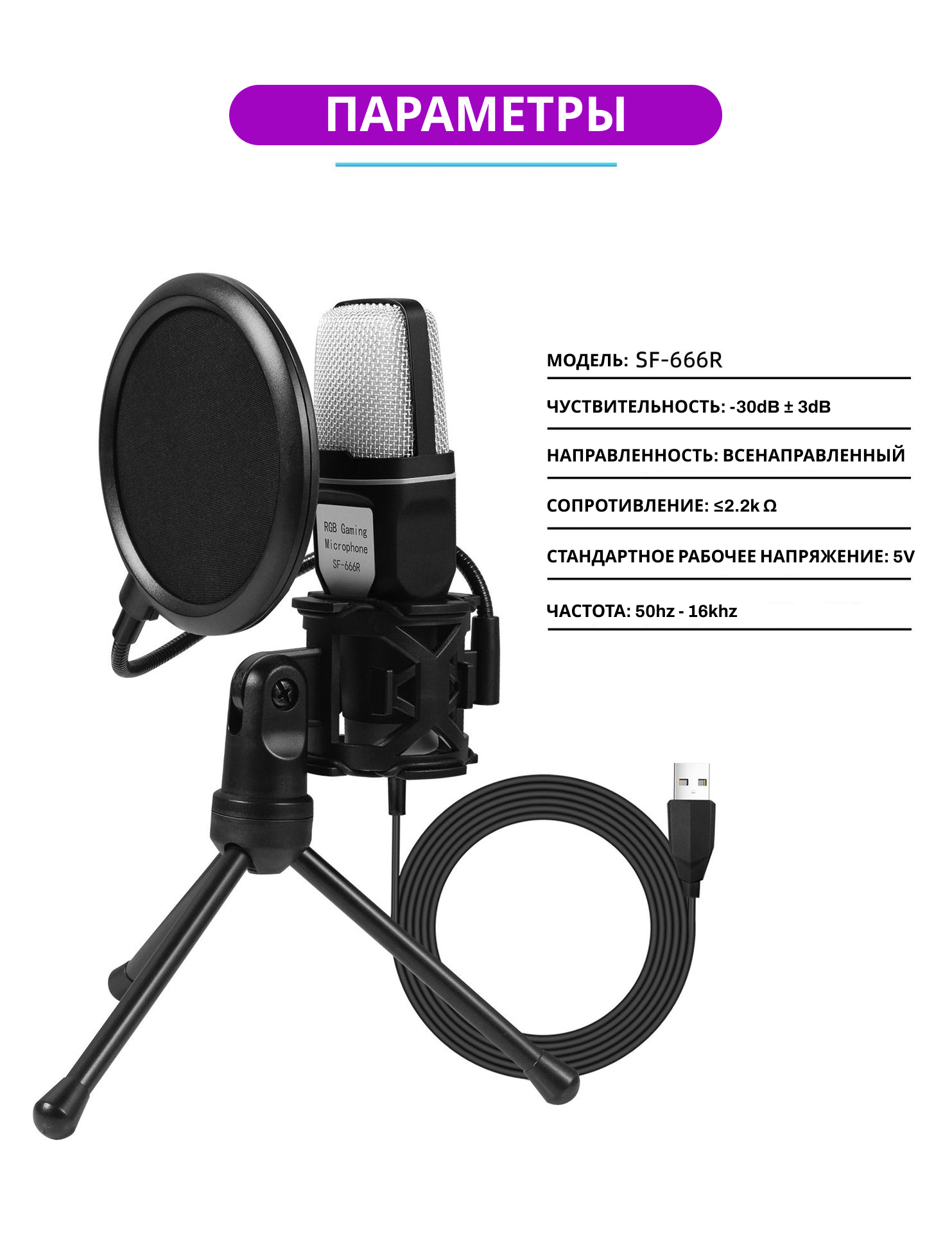 | Дополнительная информация | Крепление на стойку, Микрофонная стойка, Поп-фильтр, Подсветка, Гибкая ножка |