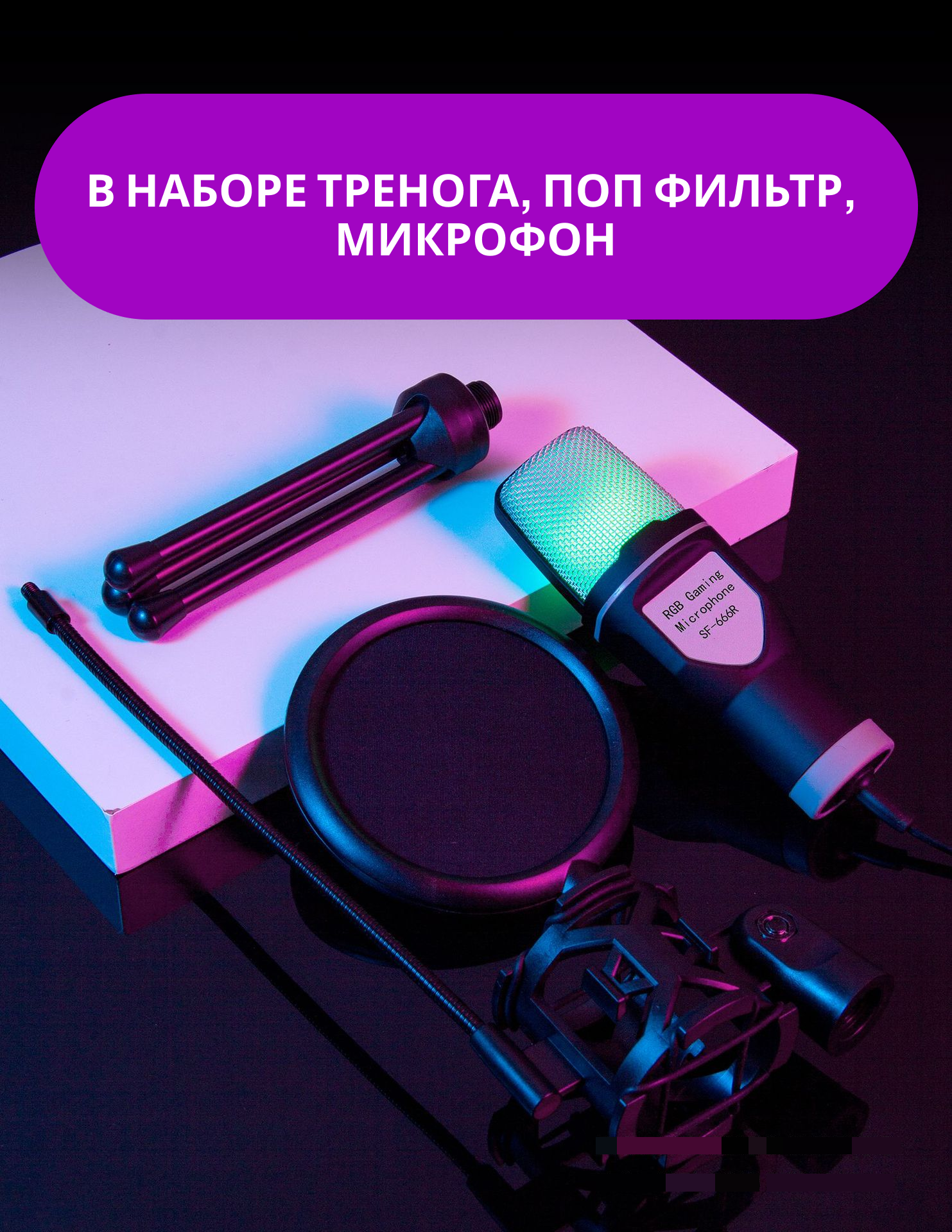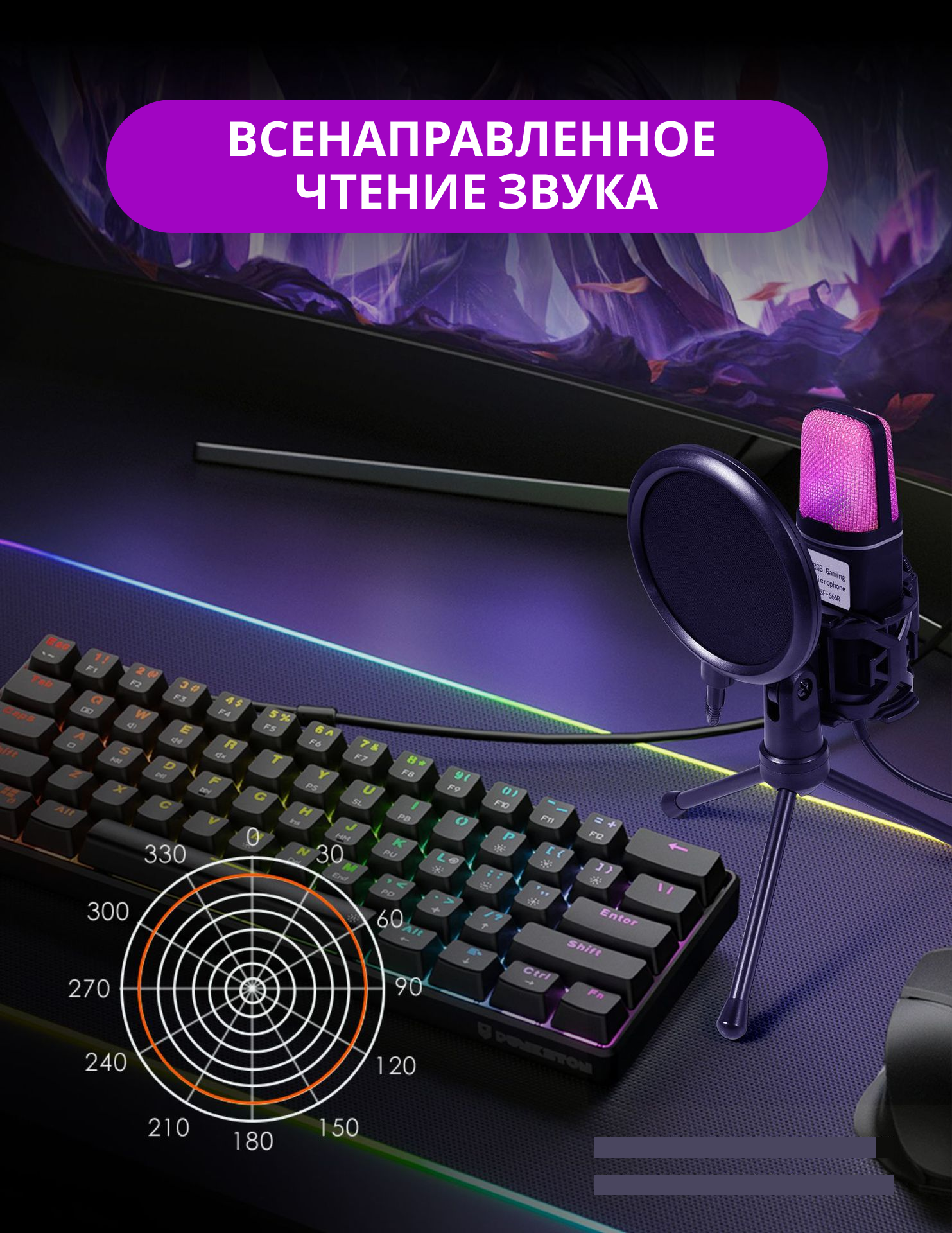 Игровой микрофон c RGB подсветкой для пк, для игр, стрима Twitch, записи и подкастов интересное: