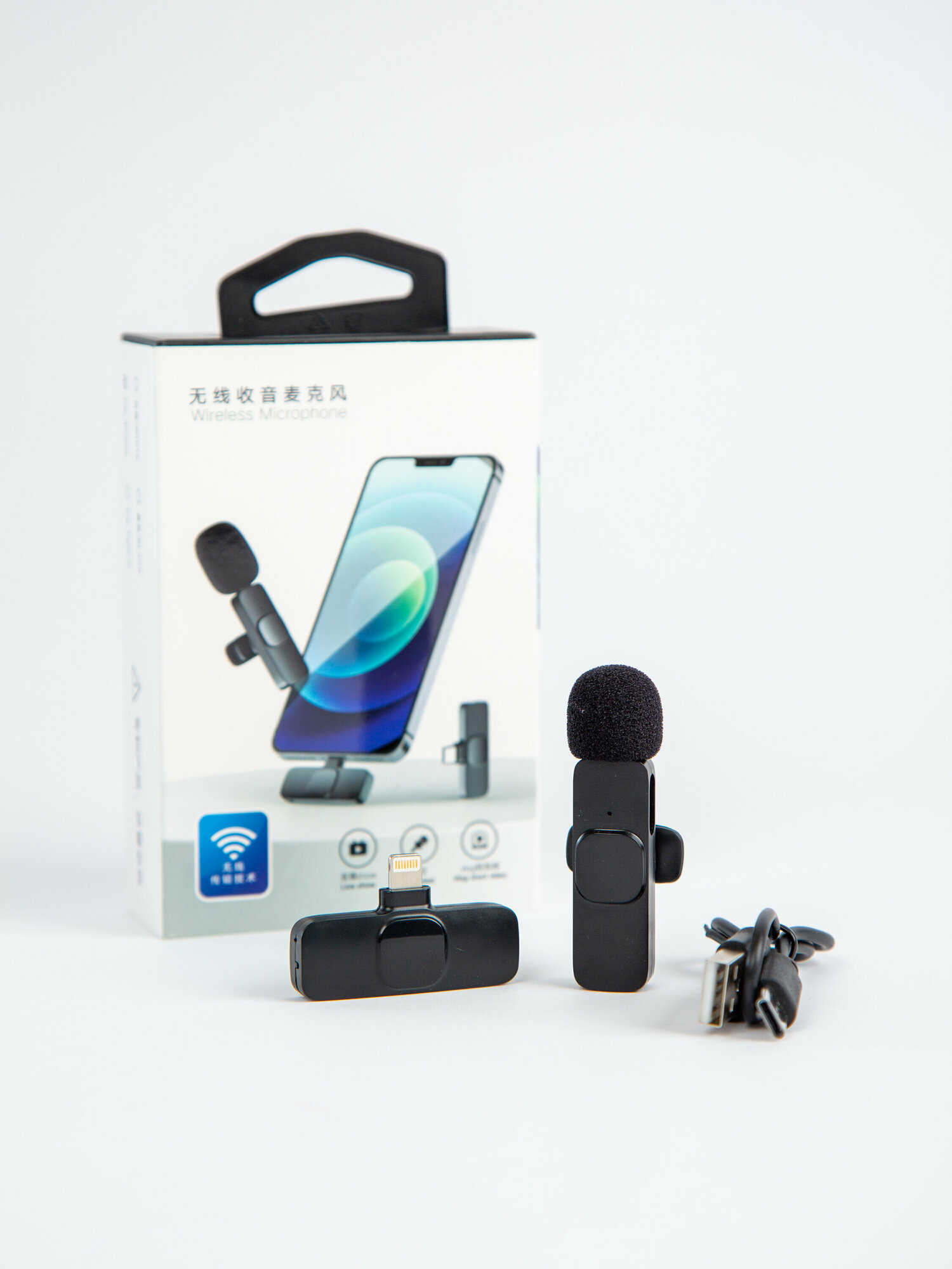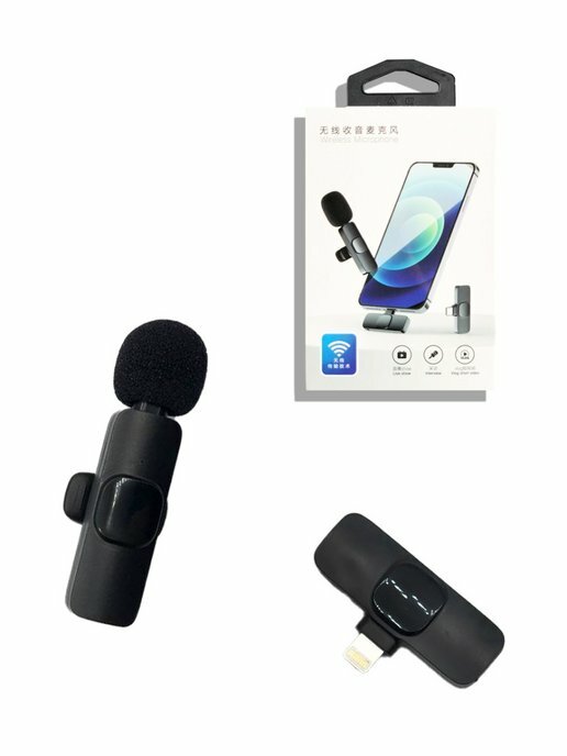 Микрофон петличный беспроводной, с шумоподавлением, петличка, для мобильного телефона, разъем Lightning, для Iphone, черный, 2шт