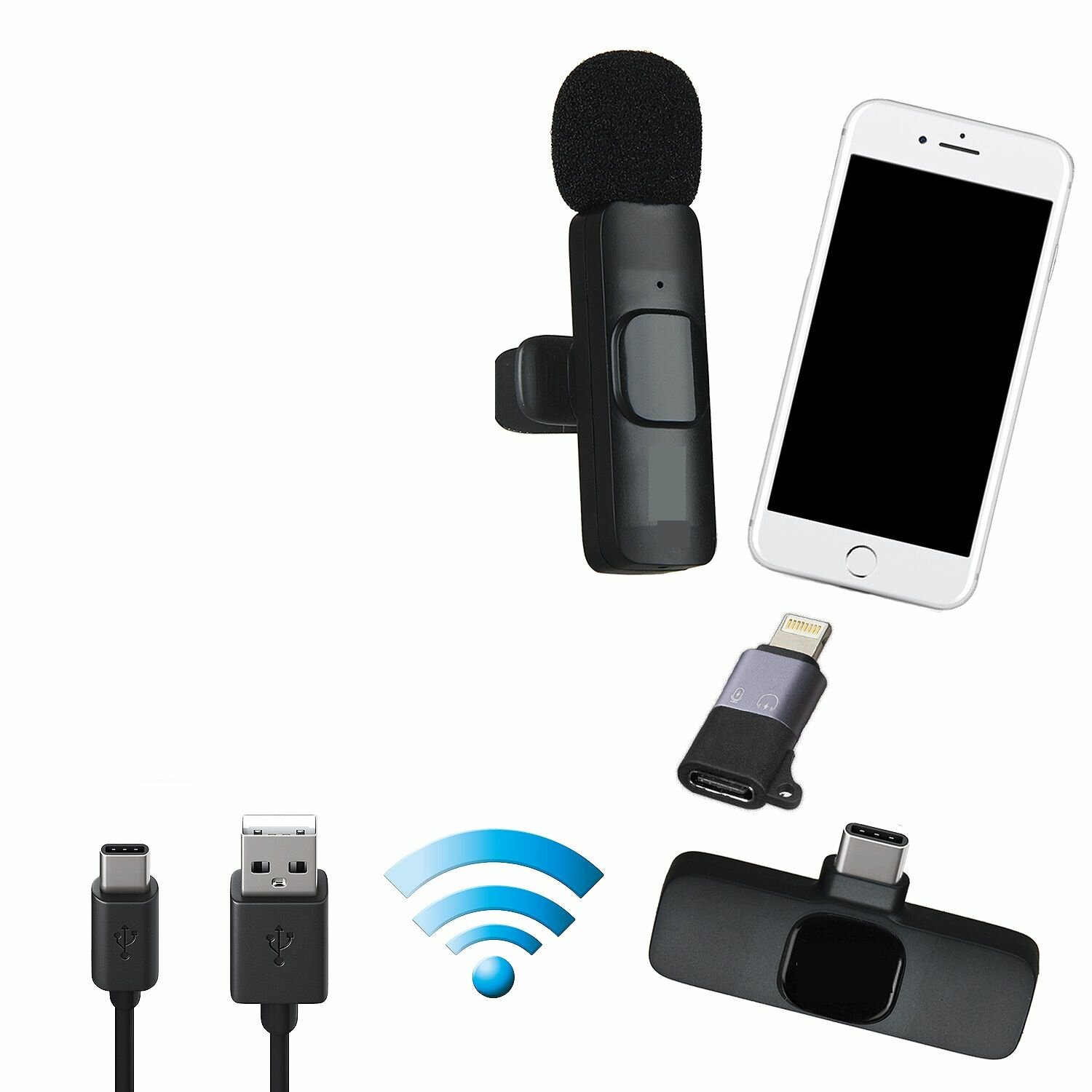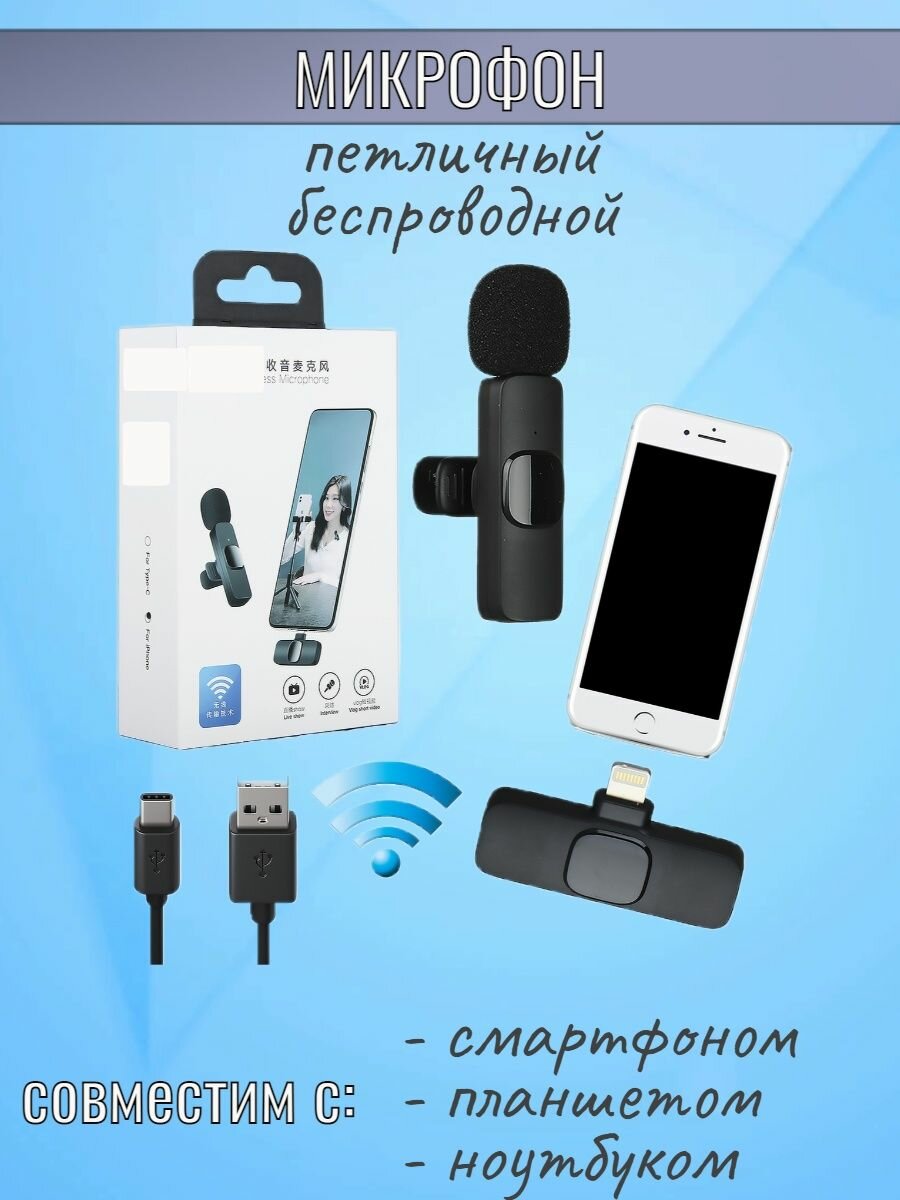Микрофон петличный беспроводной K8 /lightning Type C / Wireless Microphone K8 / петличка черный