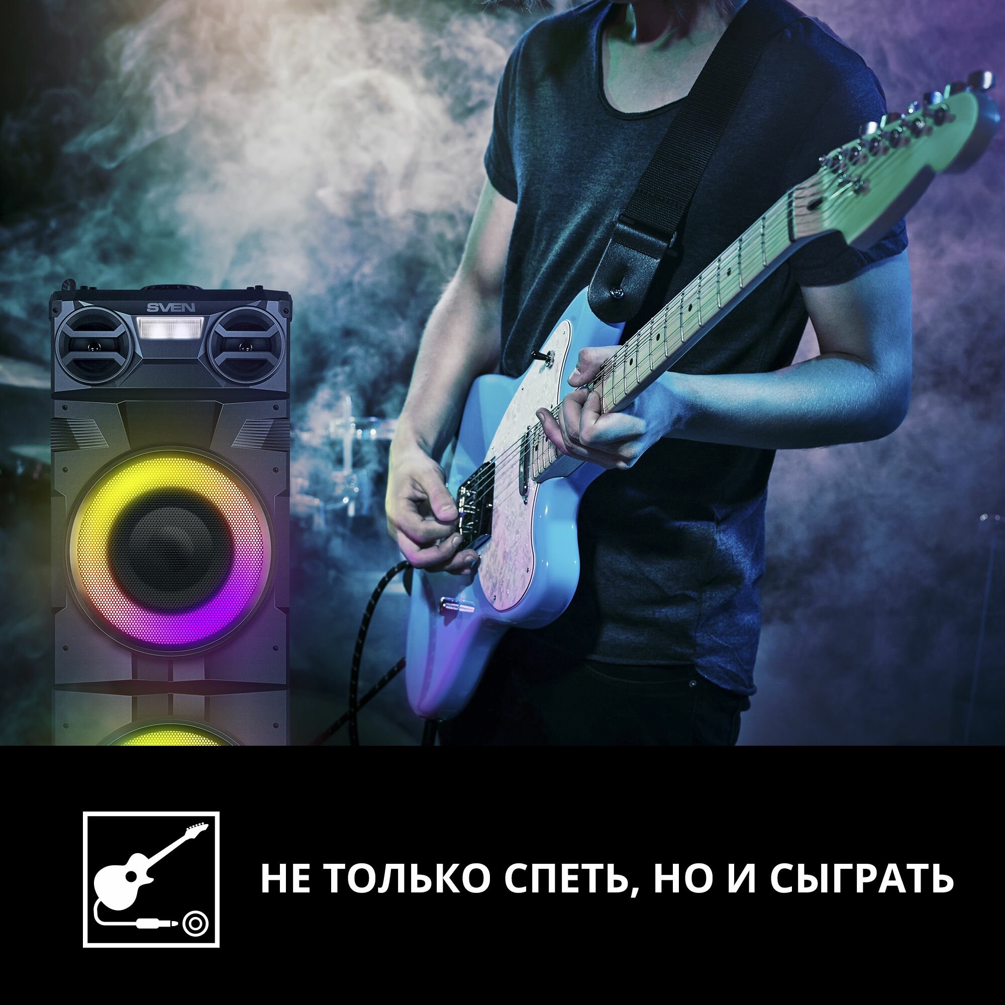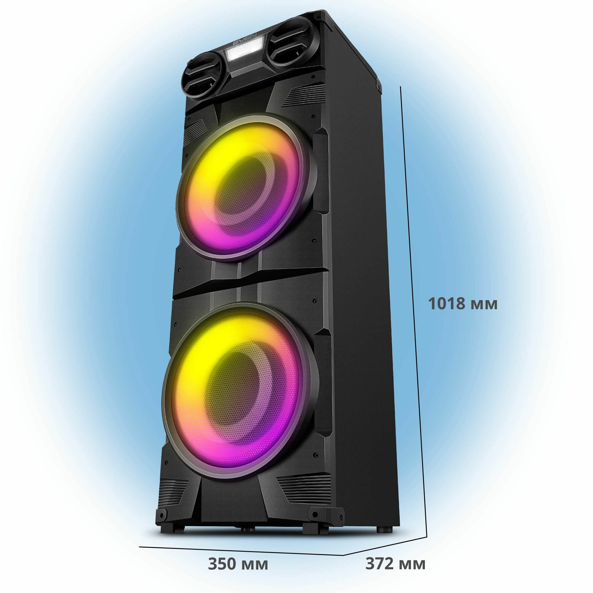 Колонка портативная беспроводная bluetooth SVEN PS-1900 / 1000 Вт / TWS / Bluetooth / FM / USB / LED-дисплей интересное:
