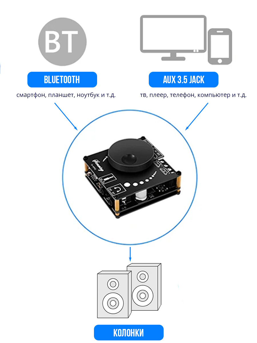 Усилитель мощности звука 2х50W с Bluetooth 5.1 интересное: