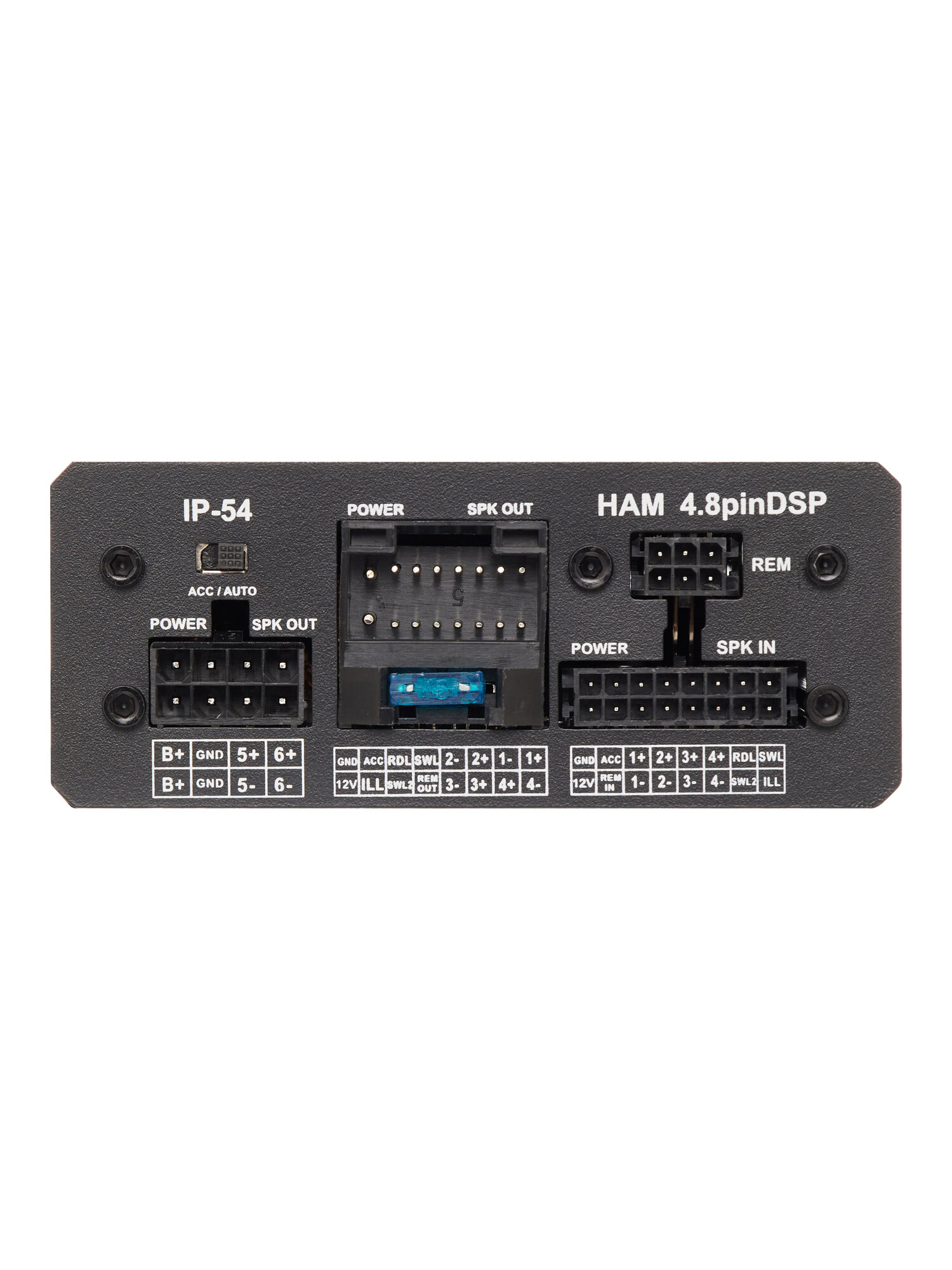 Купить 6-канальный усилитель со встроенным 8-канальным процессором (DSP) Hellion HAM 4.8pinDSP для подключения к ГУ Android Auto