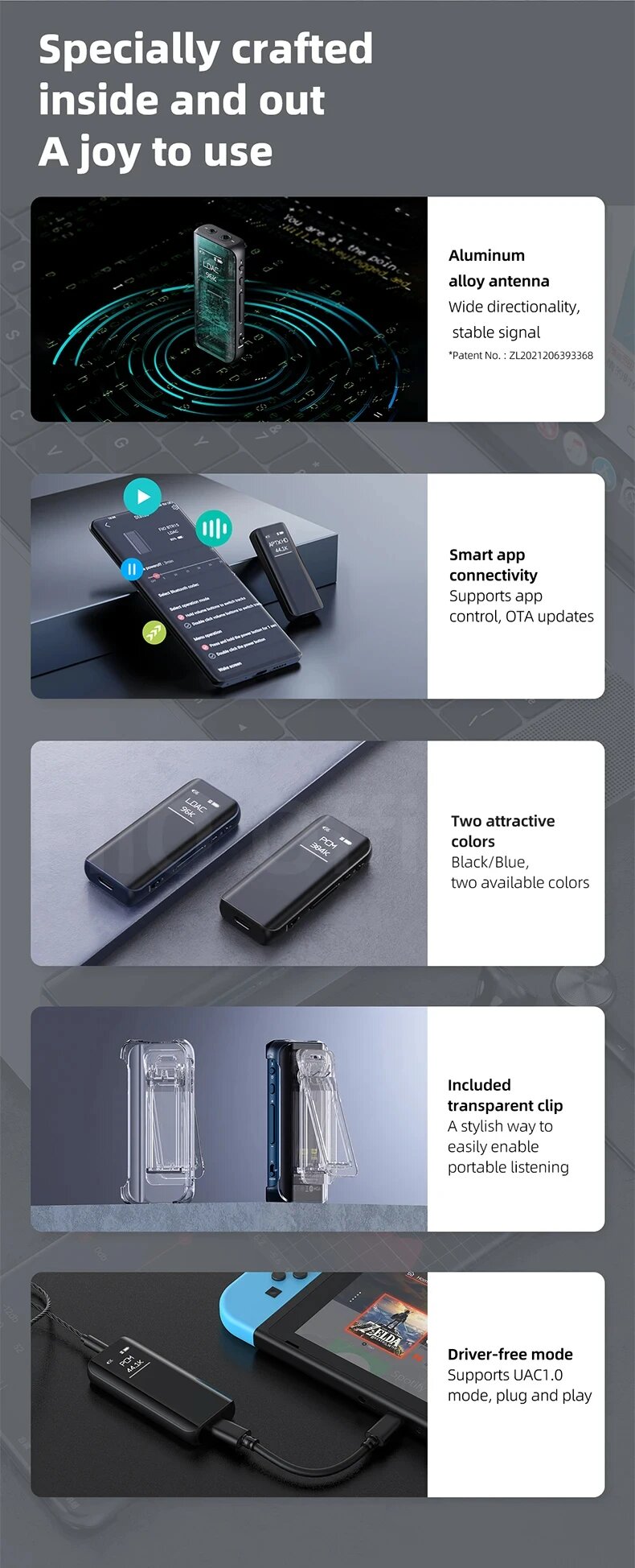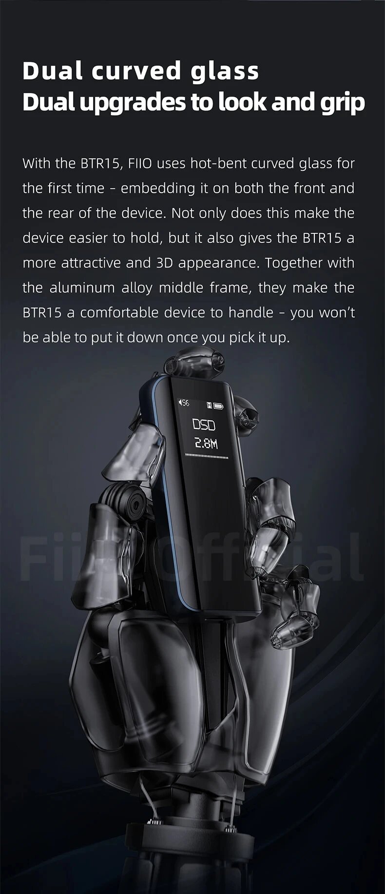 | Дополнительная информация | FiiO BTR15 также оснащен большим ярким экраном— великолепным 0.96-дюймовым OLED-дисплеем. |