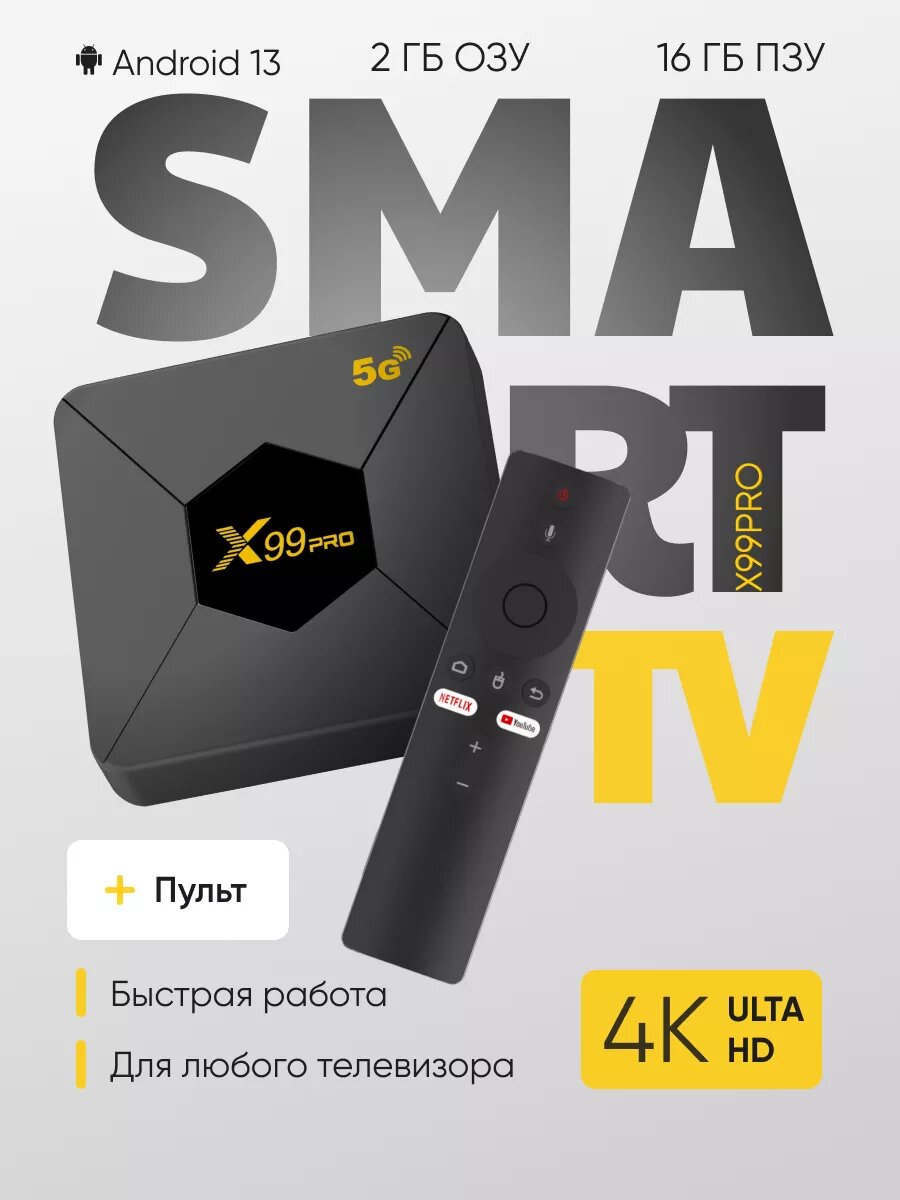 Тв приставка с Android 13, поддержкой 4k, BT5, Wi-Fi и 16 Гб памяти