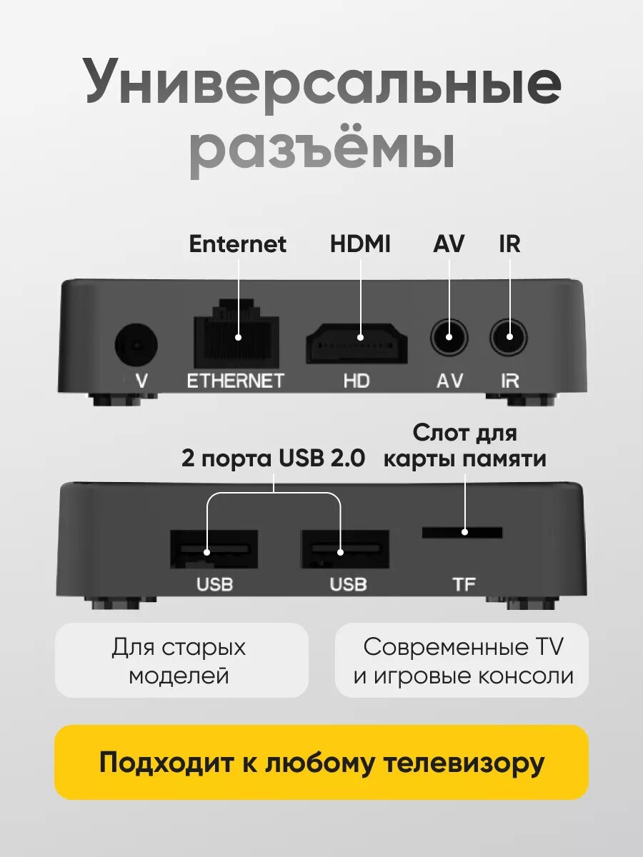 Смарт ТВ приставка / Android 13 / Поддержка 8K / BT4.0 / WiFi / 32ГБ интересное: