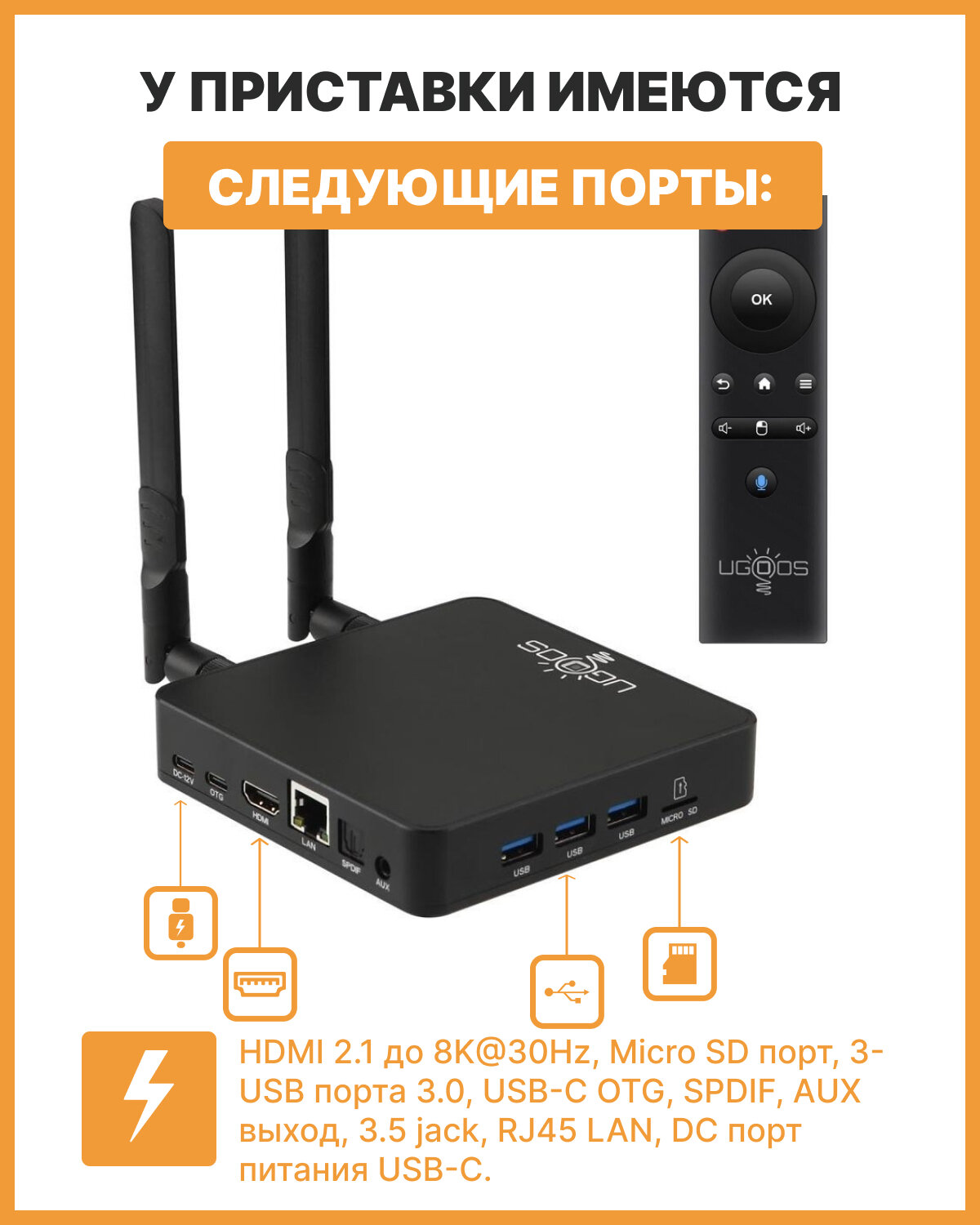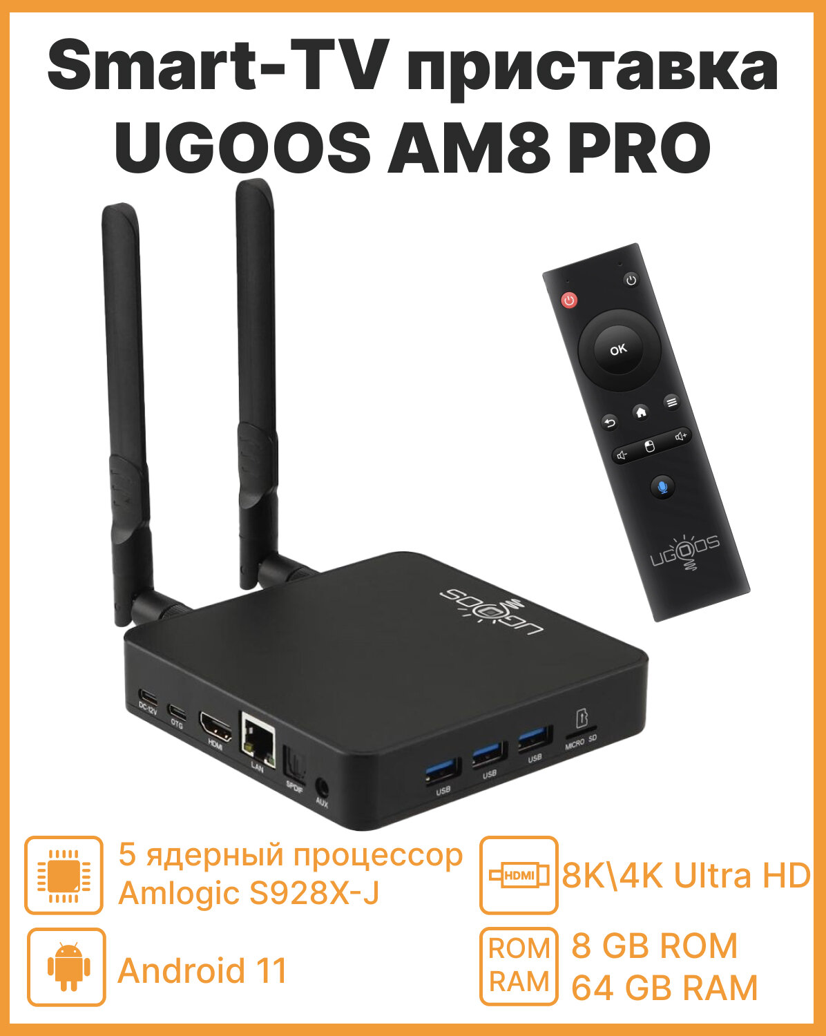 Смарт ТВ приставка Ugoos AM8 PRO 8/64Gb (WiFi-6E) c Bluetooth пультом интересное: