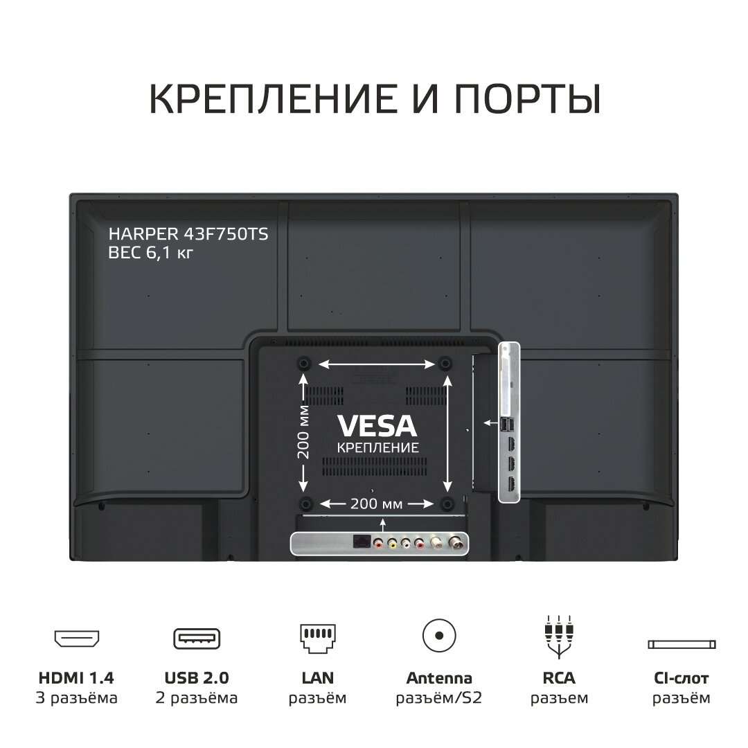 Телевизор HARPER 43F750TS, SMART (Яндекс ТВ), черный интересное: