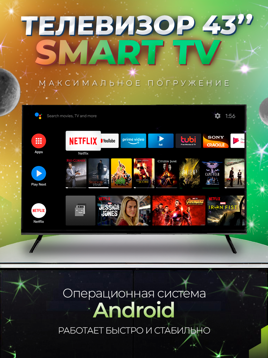 Смарт телевизор SmartTV 43 дюйма FullHD Android интересное: