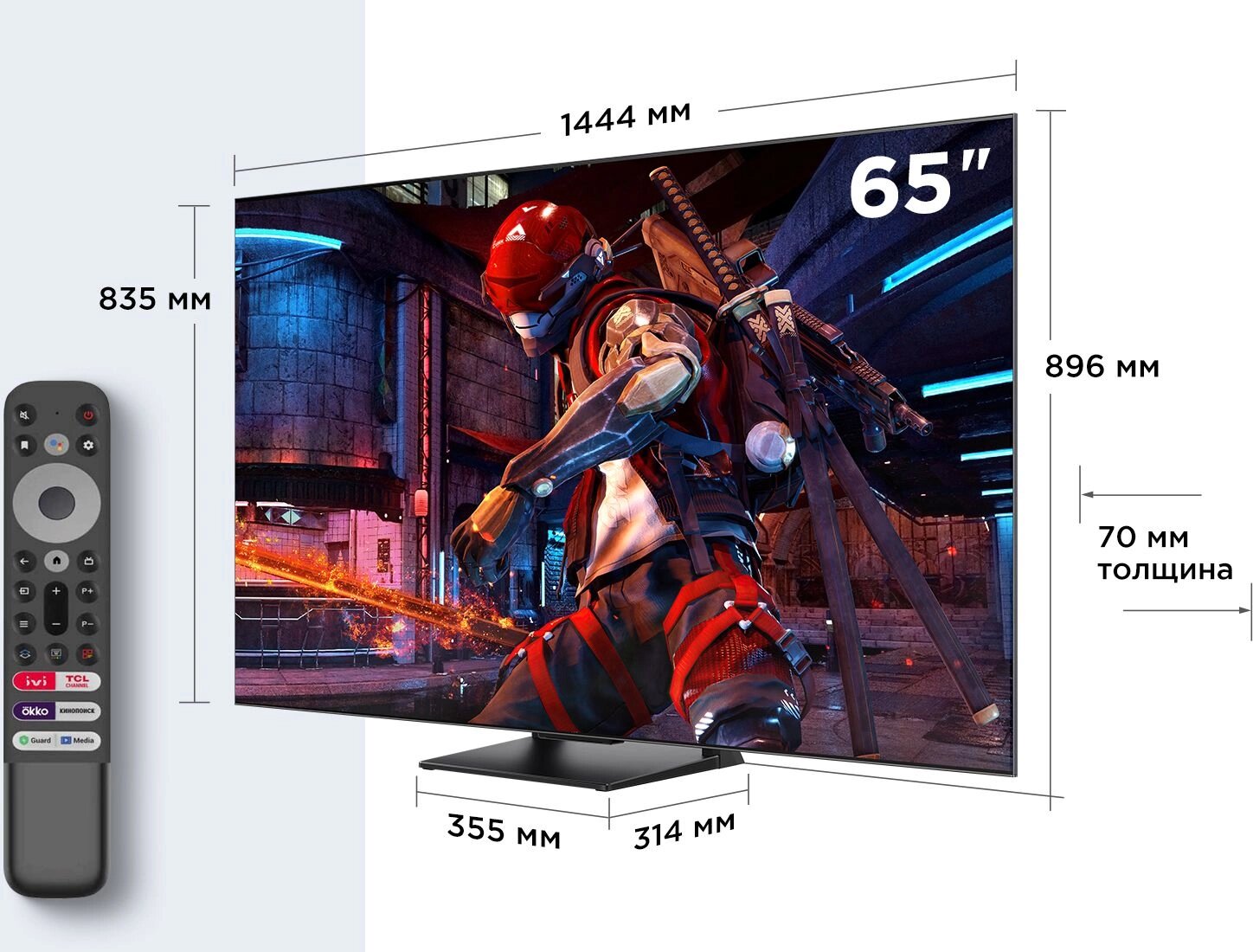 | Дополнительная информация | 144Гц VRR. Голосовое управление. QLED. 1000 нит пиковая яркость. Google TV. Встроенный модуль Bluetooth: Да. Габаритные размеры (В*Ш*Г): 77*122*32 см. Серия: C745. Диагональ экрана: 139.7. Ultra HD: Да. Экран: 55"/3840x2160 Пикс. Частота обновления: 144. Технология HDMI ARC: Да. Операционная система: Google TV. Звук: 2.0. Тип батарей пульта ДУ: 2 х AAA. Смартфон в качестве пульта ДУ: Да. Поддержка Wi-Fi: Да. Поддержка Smart TV: Да. Запись с ТВ на USB устройство: Да. Функция TimeShift: Да. Цифровой тюнер DVB: T/T2/C/C2/S/S2. LAN разъем (RJ45): 1. Разъем для модуля DVB CAM: 1. Разъем для наушников 3.5 мм: 1. Настольная подставка: Да. Вес без подставки: 13.5. Ширина подставки: 35.5. Технология экрана: VA. Воспроизведение с USB: Да. Поддержка Apple HomeKit: Да. Габаритные размеры (без подставки): 71*122*7 см. Google Assistant: Да |