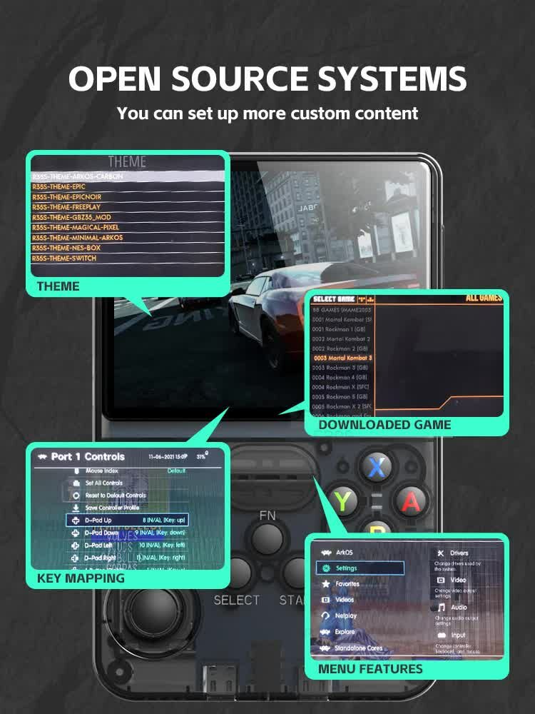 Ретро консоль Data Frog R36S Black интересное: