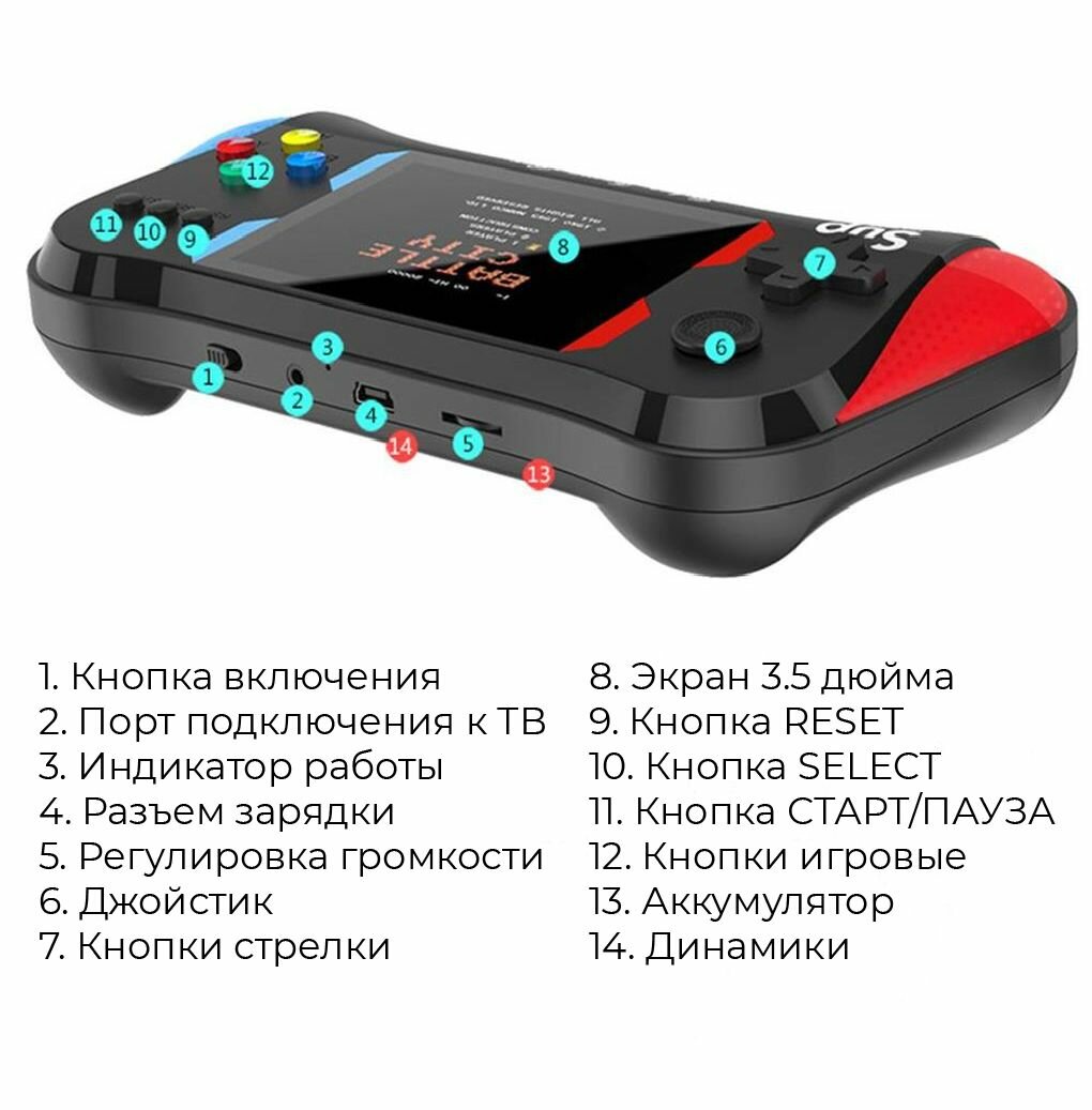 Портативная игровая консоль X7 M / Ретро приставка 500 игр / Консоль с возможностью подключения джойстиков - TV-приставка интересное: