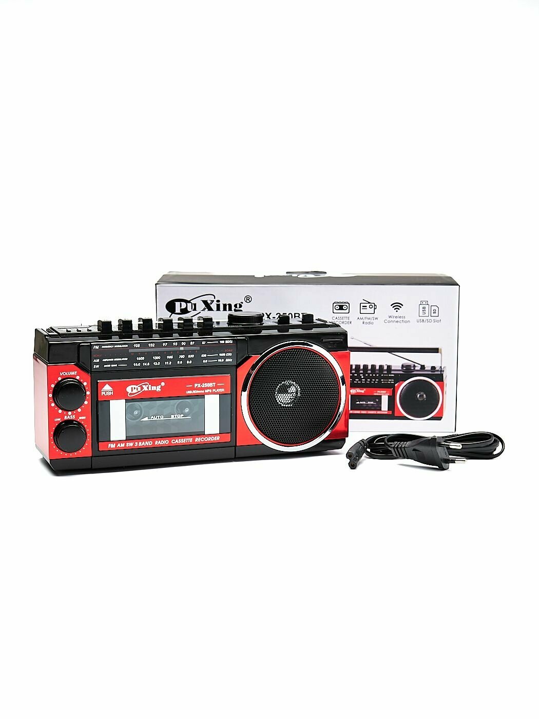 Переносная кассетная магнитола с Bluetooth, USB и SD/MMC PuXing PX-250BT интересное: