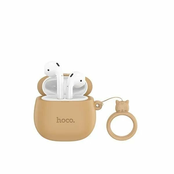 Беспроводные наушники Hoco EW45 TWS и чехол с брелком бежевый