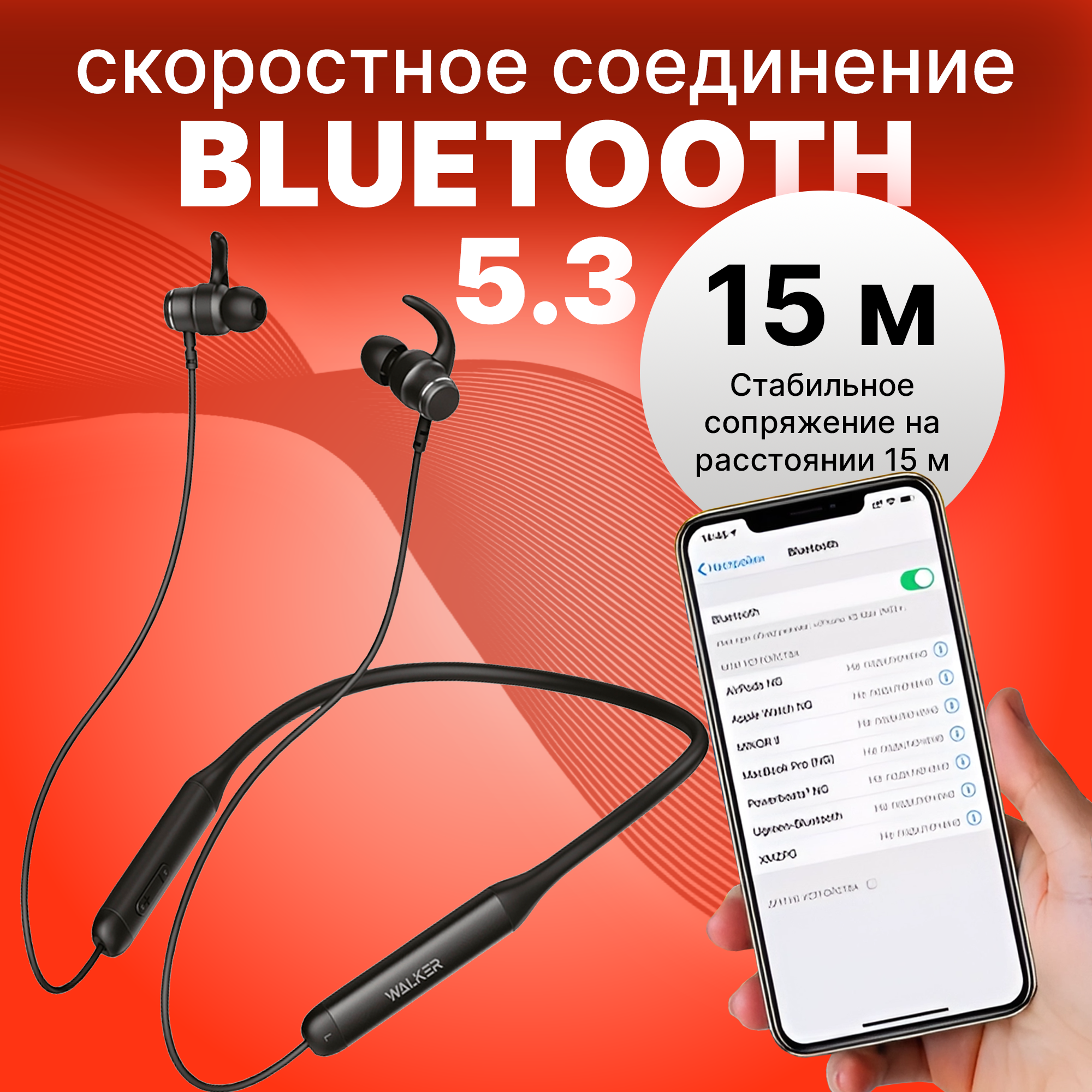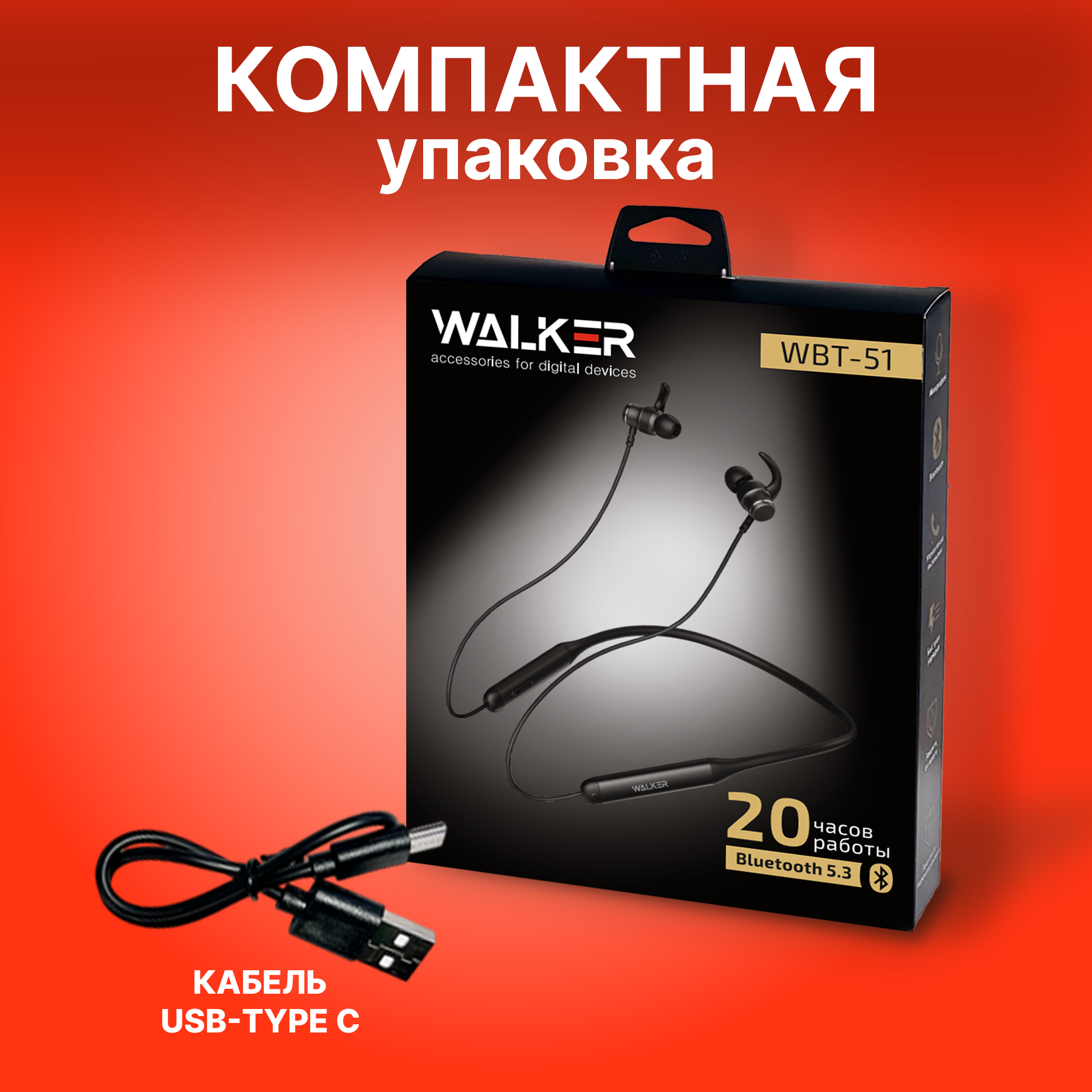 Наушники беспроводные Bluetooth, WALKER, WBT-51, с микрофоном и управлению громкостью, влагозащитные, для спорта, игровые наушники для телефона, черные интересное: