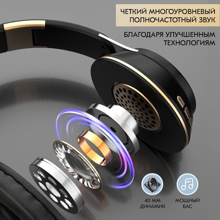 Наушники беспроводные большие полноразмерные с микрофоном Bluetooth