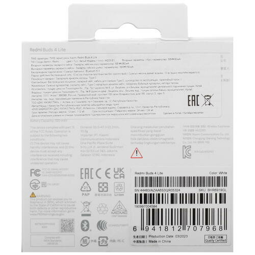 | Комплектация | Наушники Xiaomi Redmi Buds 4 Lite Black, черный (BHR7118GL) |