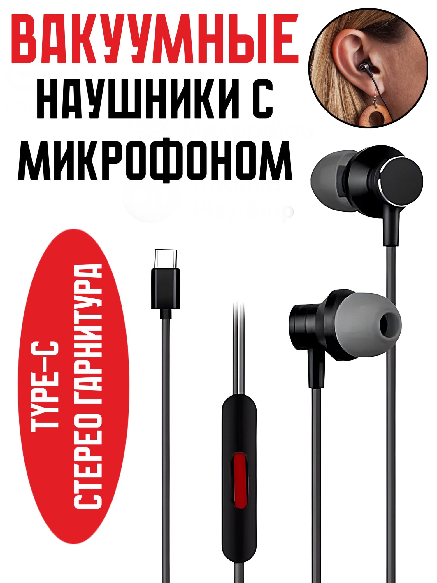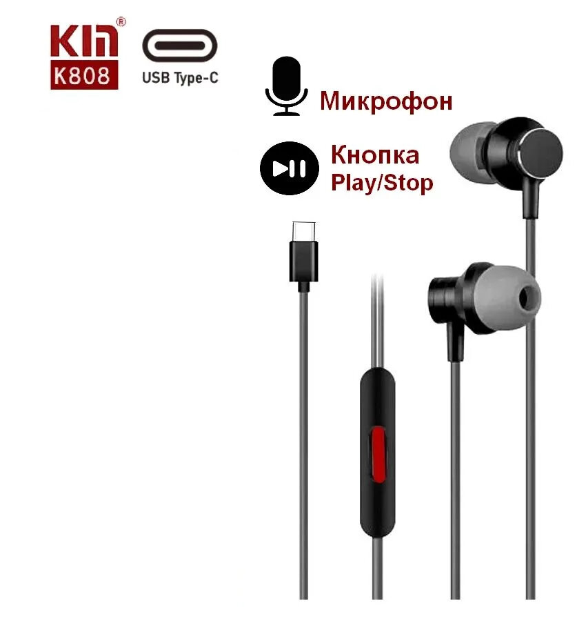 Вакуумные наушники с микрофоном KIN K-808 Hands-free Type-C / стерео гарнитура с пультом проводная внутриканальная интересное: