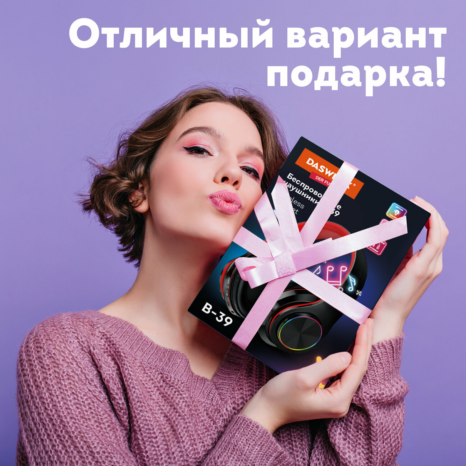 Наушники беспроводные большие светящиеся накладные, чёрные DASWERK B-39, 513805 1 шт . интересное: