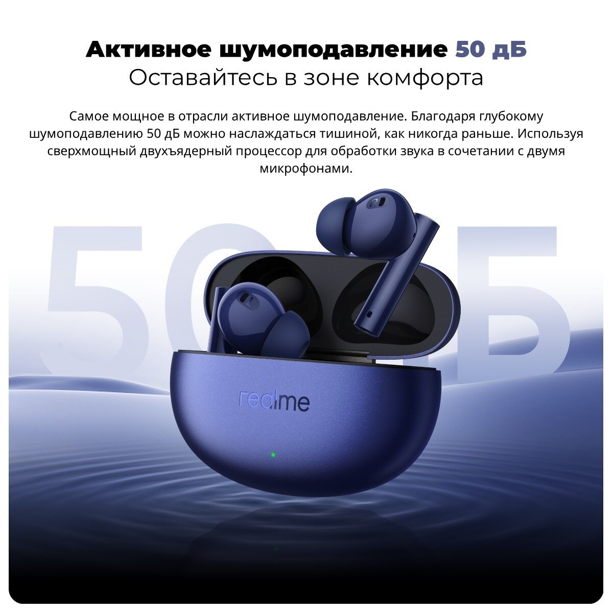 Настоящие беспроводные Bluetooth-наушники Realme Buds Air5 имеют шумоподавление на 50 дБ и сверхдлительное время автономной работы.