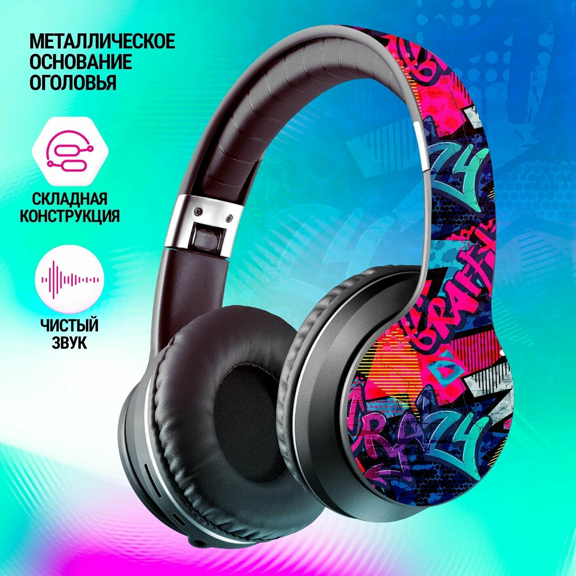 Наушники Defender FreeMotion B595 беспроводные, с микрофоном, Micro-USB, Bluetooth, граффити интересное: