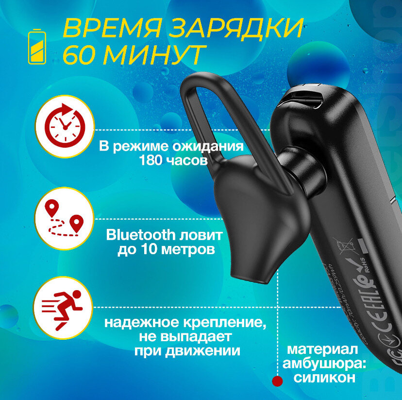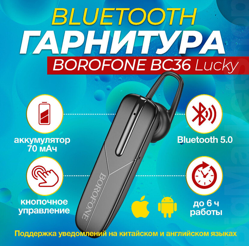 Блютус гарнитура для телефона Borofone BC36, чёрный интересное: