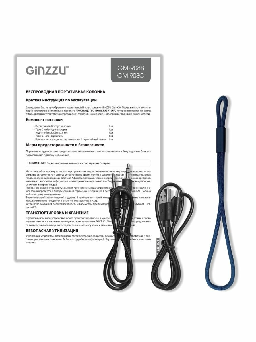 Акустическая система Ginzzu GM-908C синий интересное: