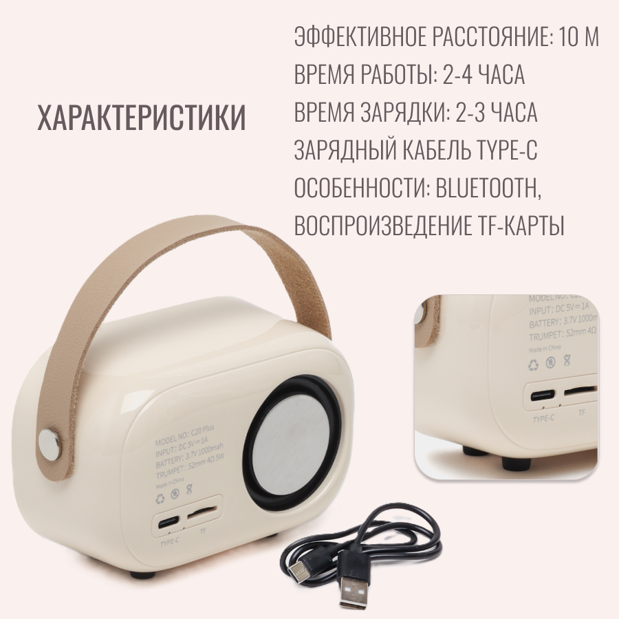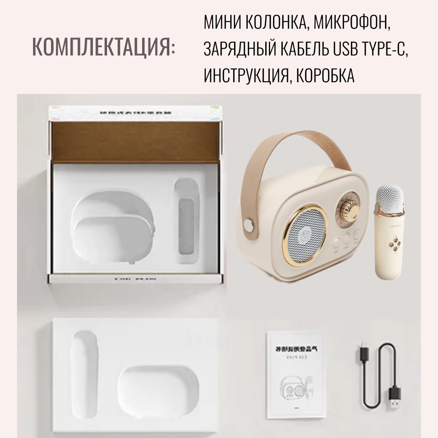 Беспроводная мини колонка с микрофоном, цвет бежевый / караоке микрофон / блютуз колонка интересное: