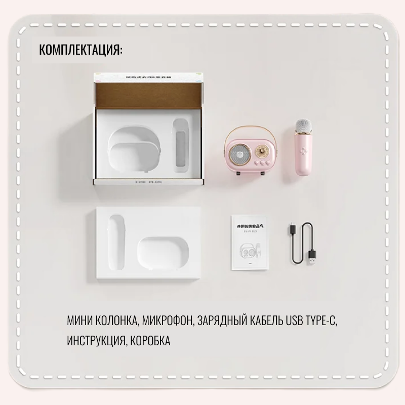 Беспроводная мини колонка с микрофоном, цвет розовый / караоке микрофон / блютуз колонка интересное: