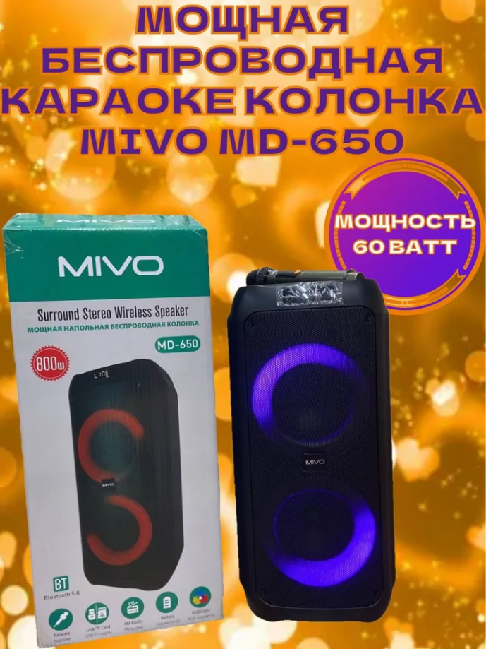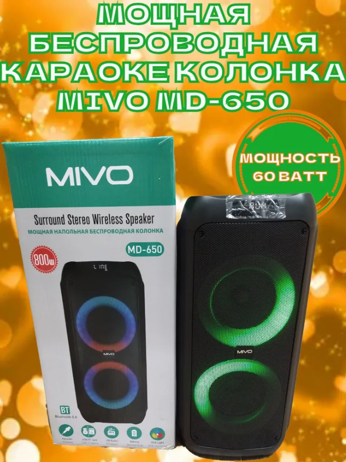 Ниже Вы можете прочитать отзывы на Напольная светящаяся беспроводная колонка Mivo MD-650 с караоке/800Вт/FM/Bluetooth/USB/SD/AUX/встроенный аккумулятор, ознакомится с подробными характеристиками, посмотреть интересные обзоры и фотографии на Напольная светящаяся беспроводная колонка Mivo MD-650 с караоке/800Вт/FM/Bluetooth/USB/SD/AUX/встроенный аккумулятор.