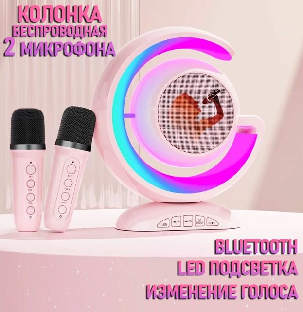 Караоке колонка с двумя микрофонами TH107-6, цвет розовый / Bluetooth колонка беспроводная интересное:
