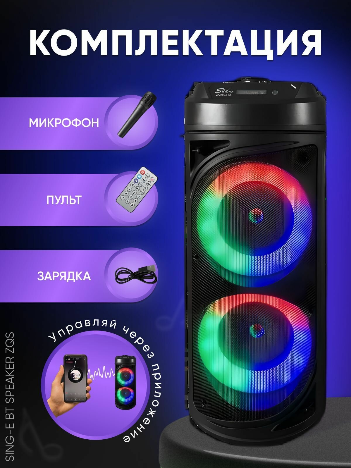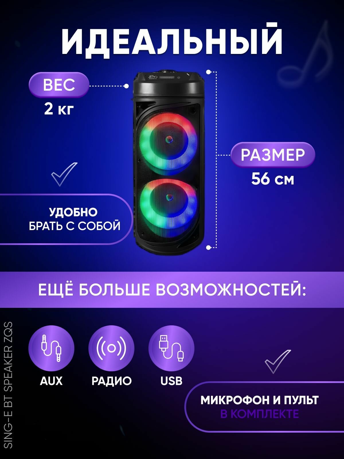 Беспроводная акустическая система ZQS 4239 / Большая портативная колонка / Колонка с bluetooth / Колонка с подсветкой / Акустическая система со светомузыкой / Колонка с микрофоном / Караоке колонка