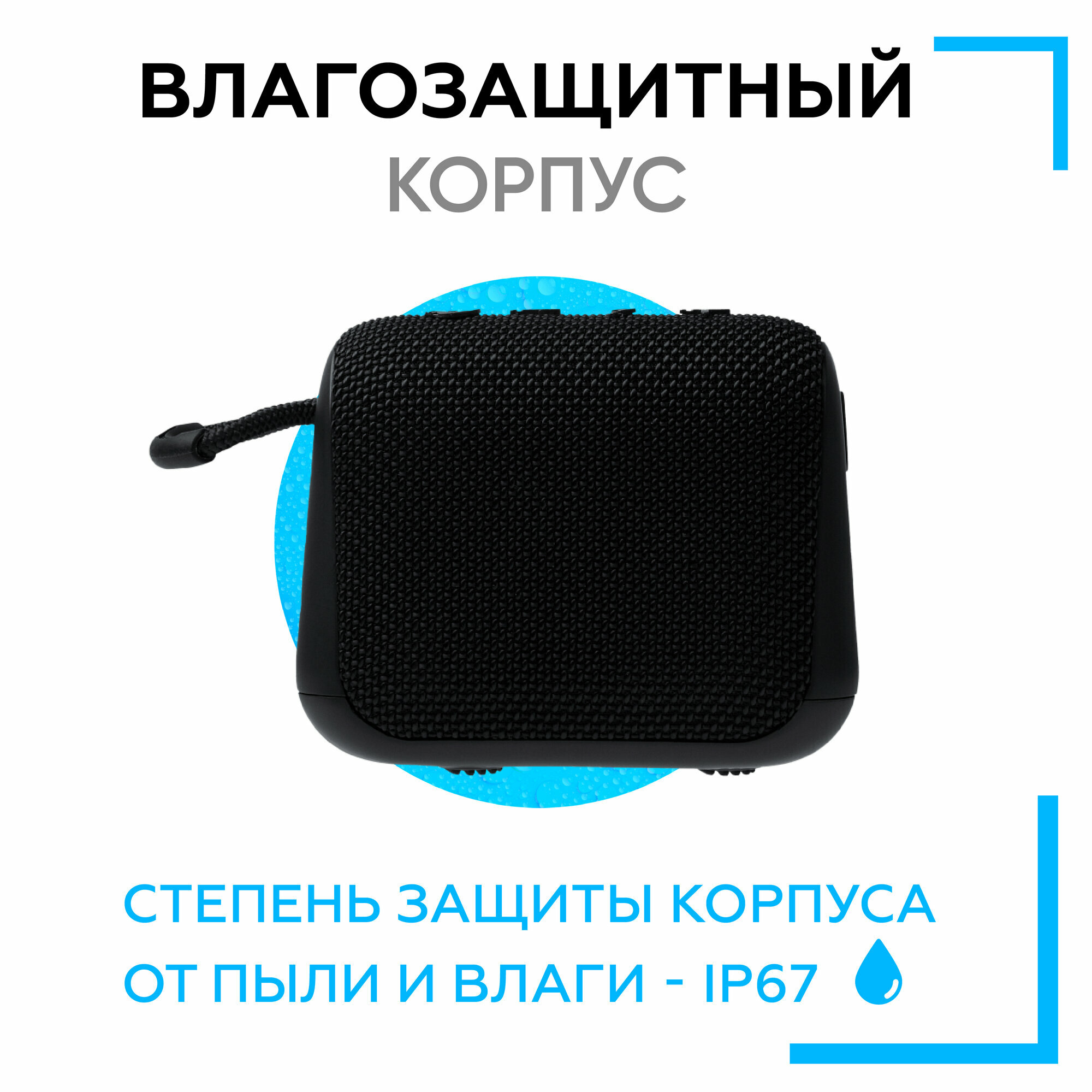Портативная колонка TFN Quadro, 3Вт, Bluetooth 5.0, microSD, microUSB, IPX6, 1500мАч, черная