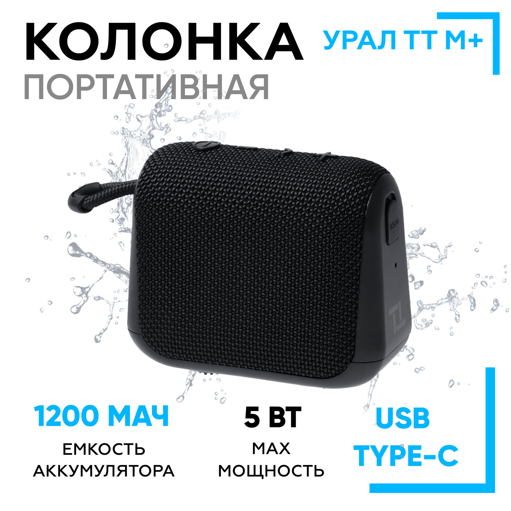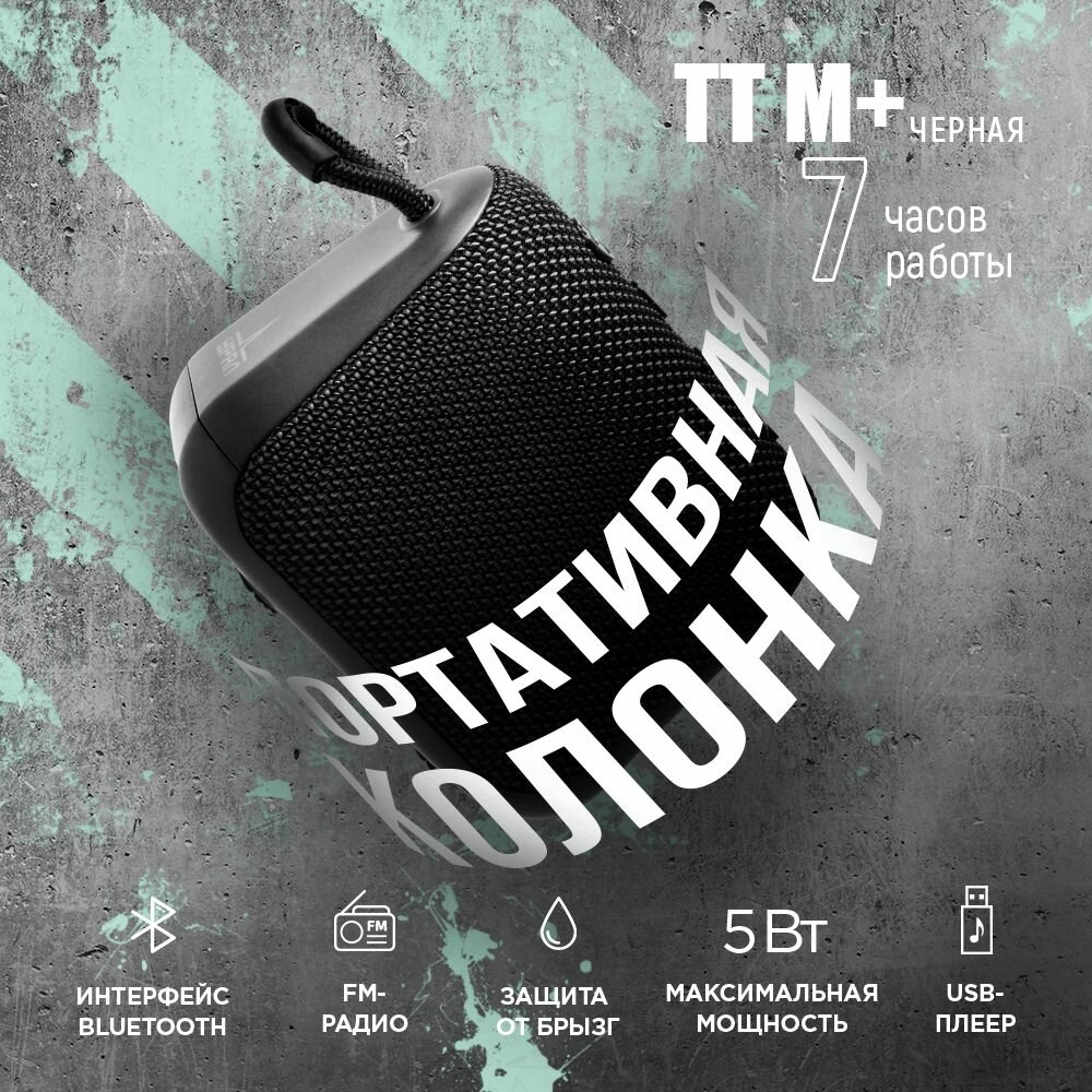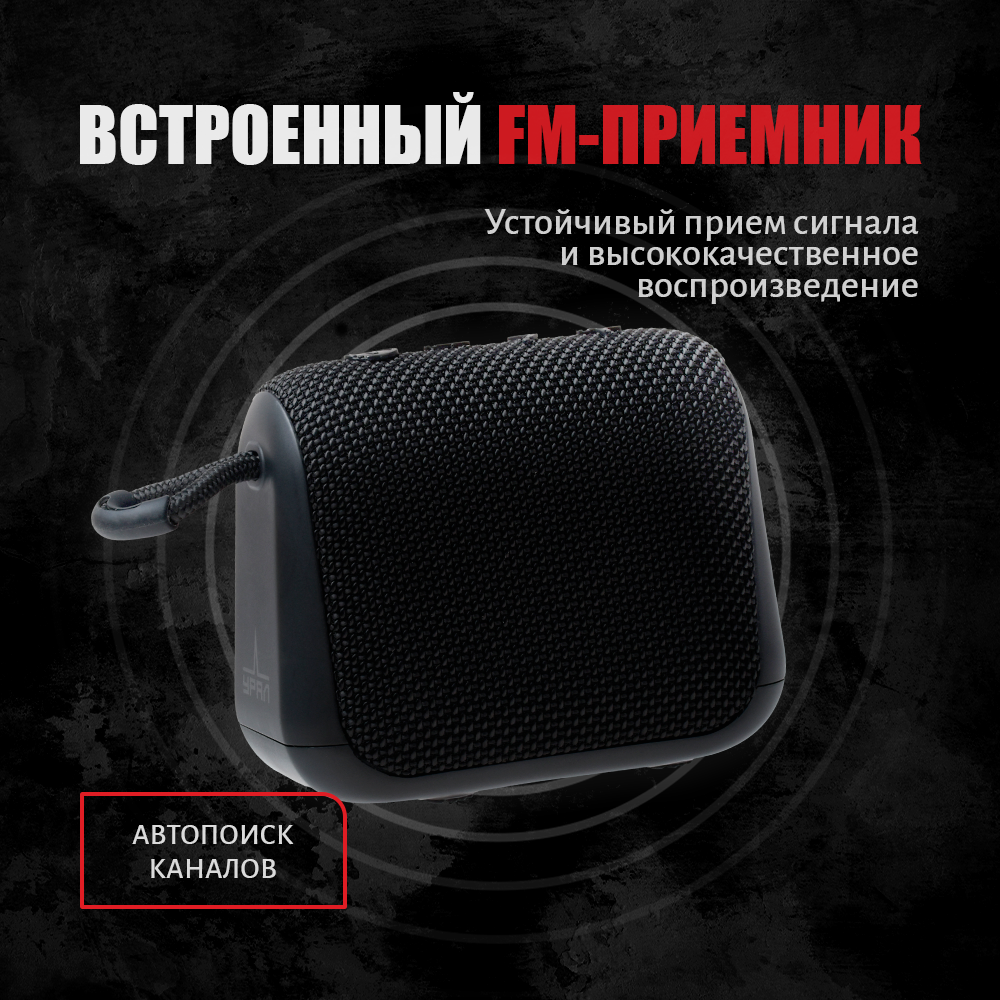 Купить Портативная Bluetooth колонка Урал ТТ М+ Черная, водонепроницаемая IP67, 5 Вт Мощность, TWS, FM-радио, беспроводная