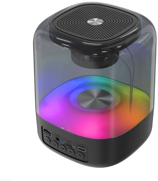 Купить Мобильный динамик HIFI с эффектом шок-бас/Ударная аудиосистема/ Сабвуфер/ Прозрачный светящийся цветной ночник/ Радужная подсветка/Total Black