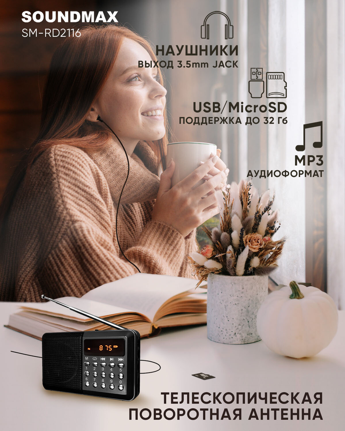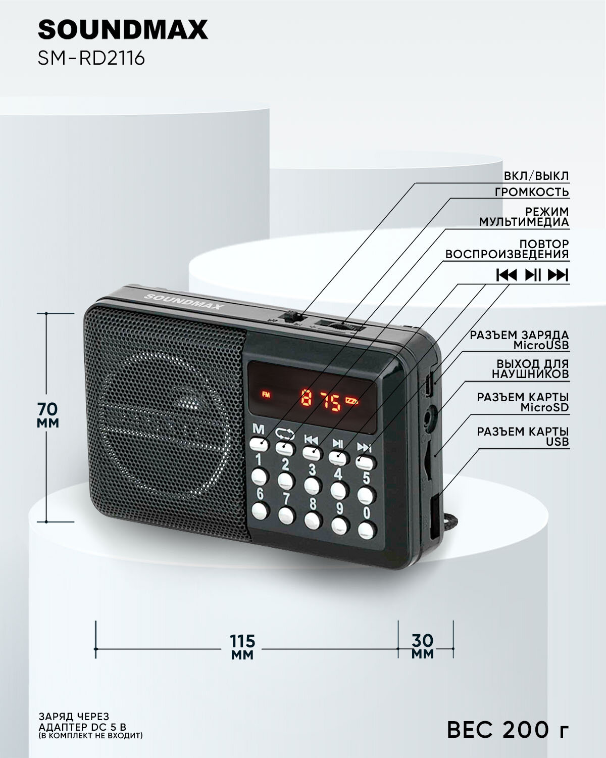 Радио Soundmax SM-RD2127(тёмный титан) интересное: