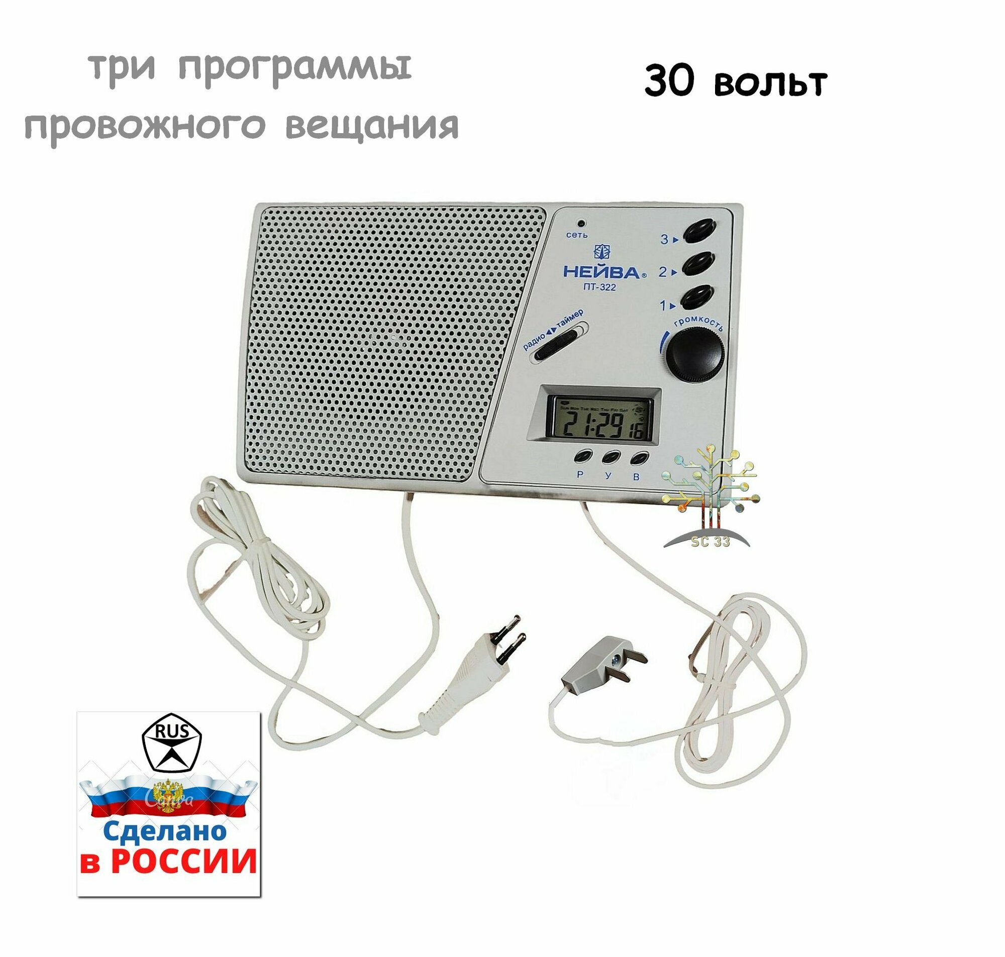 Купить Приемник трехпрограммный "нейва ПТ - 322Т" с таймером проводного вещания (трехпрограммник), 30 вольт /плоская вилка