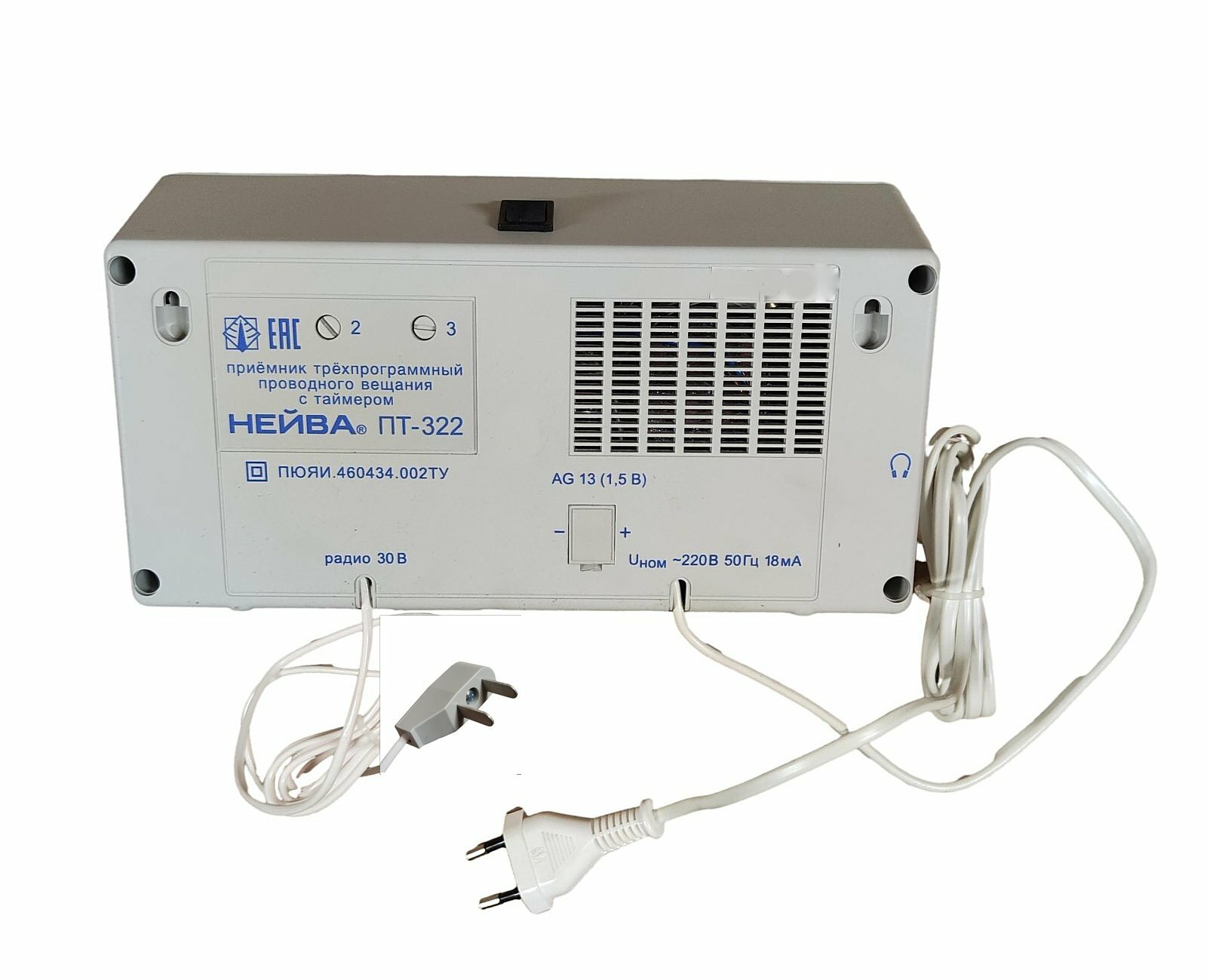 Приемник трехпрограммный "нейва ПТ - 322Т" с таймером проводного вещания (трехпрограммник), 30 вольт /плоская вилка интересное: